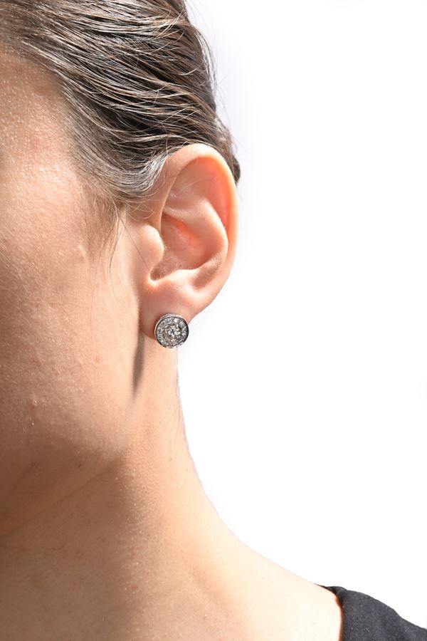 Oro bianco 750/000. Diamanti in taglio rotondo brillante ct. 2,10, prob H-J,VS-SI. Peso complessivo gr. 5,40.