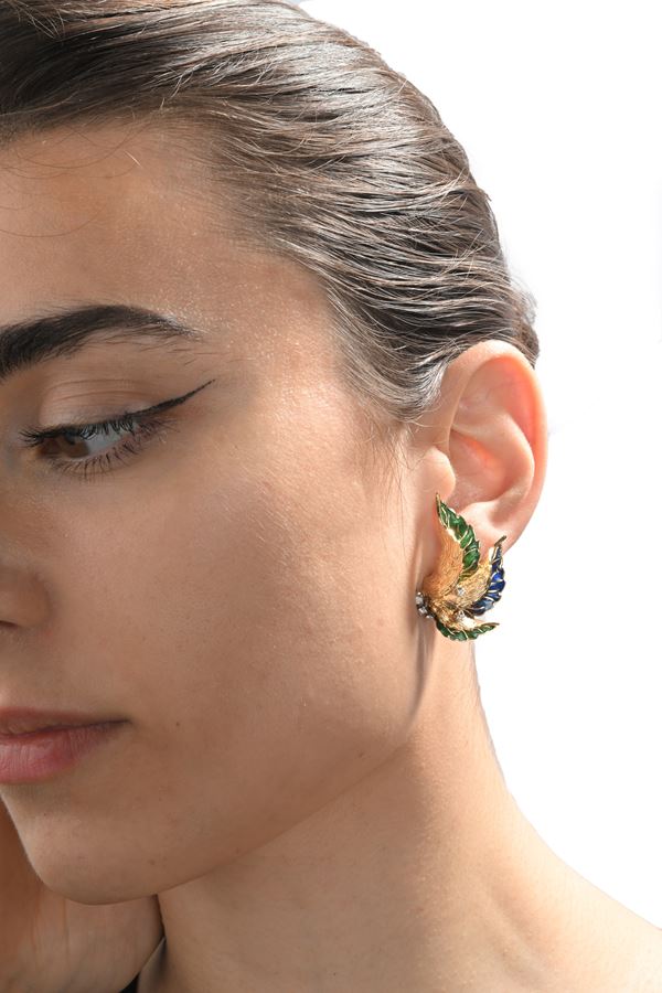 Oro giallo 750/000. Peso complessivo gr. 31,50. Chiusura a clip.