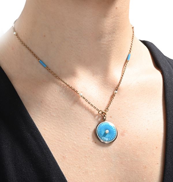Perle e smalto Guilloche. Peso complessivo gr 12,60