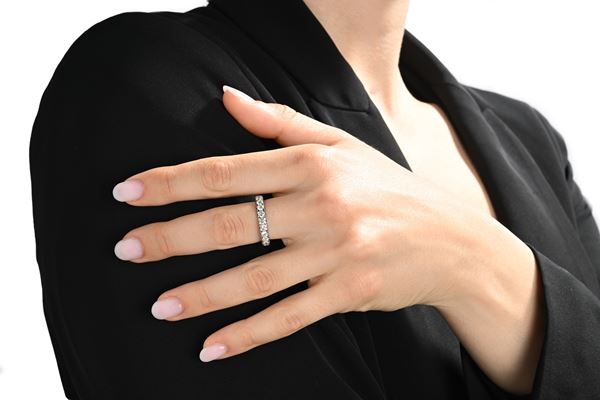 Oro bianco 750/000. Diamanti in taglio rotondo brillante ct. 2,40, prob G, VS. Peso complessivo gr. 4,00.