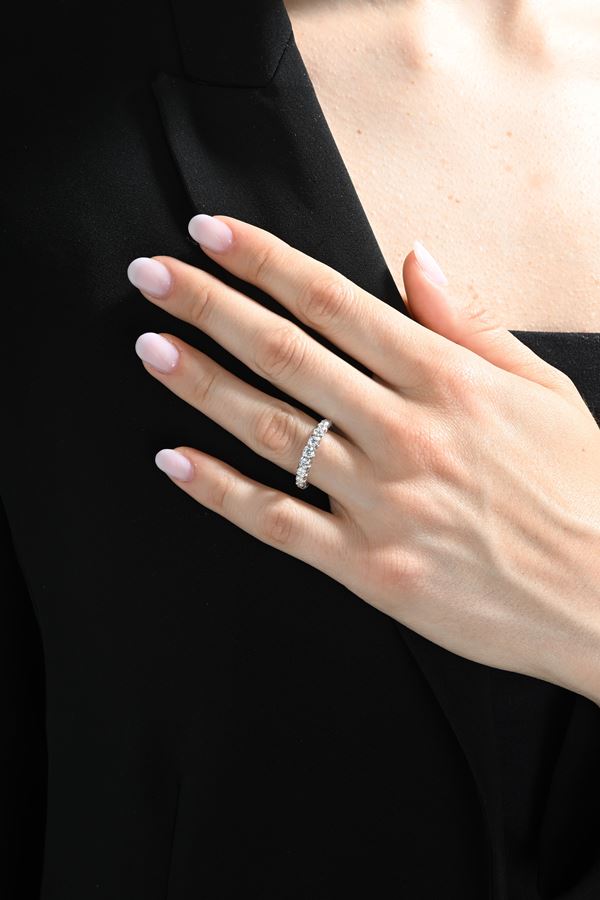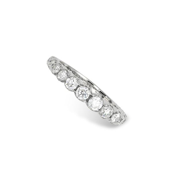 Oro bianco 750/000. Diamanti in taglio rotondo brillante ct. 1,0, prob F-G, VS. Peso complessivo gr. 3,20.