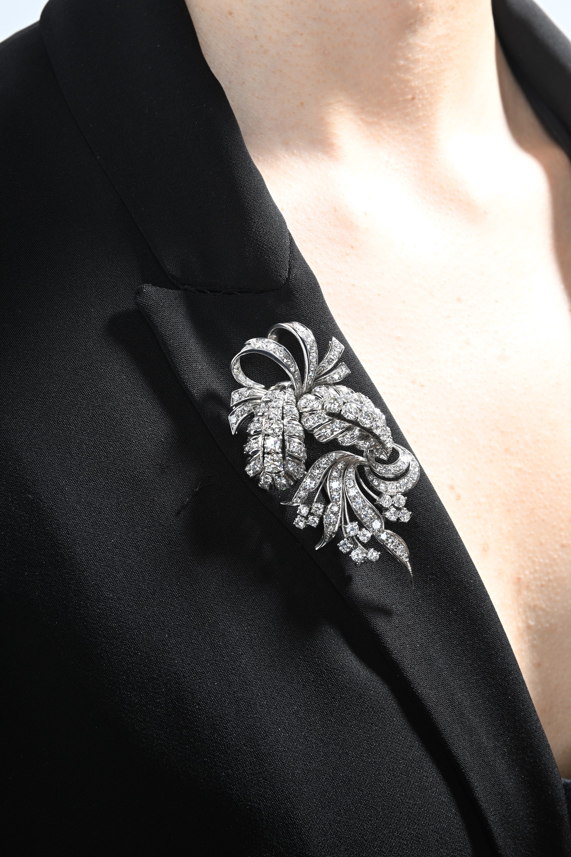 Oro bianco 750/000. Diamanti in taglio rotondo brillante ct. 4,50 ca., prob F-G, VS. Peso complessivo gr. 25,20.