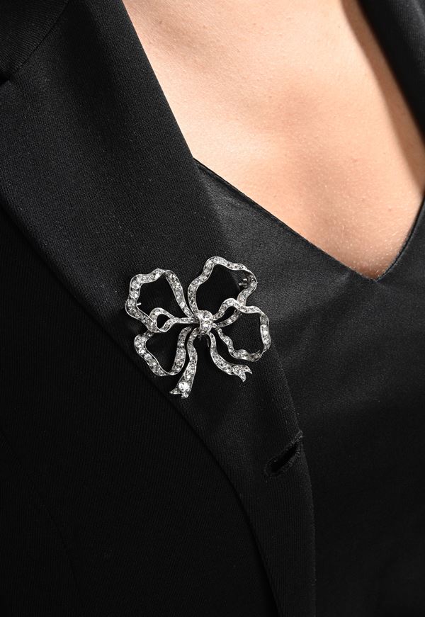 Oro bianco 750/000. Diamanti in taglio old mine, ct. 2,70 ca. Peso complessivo gr 15,90