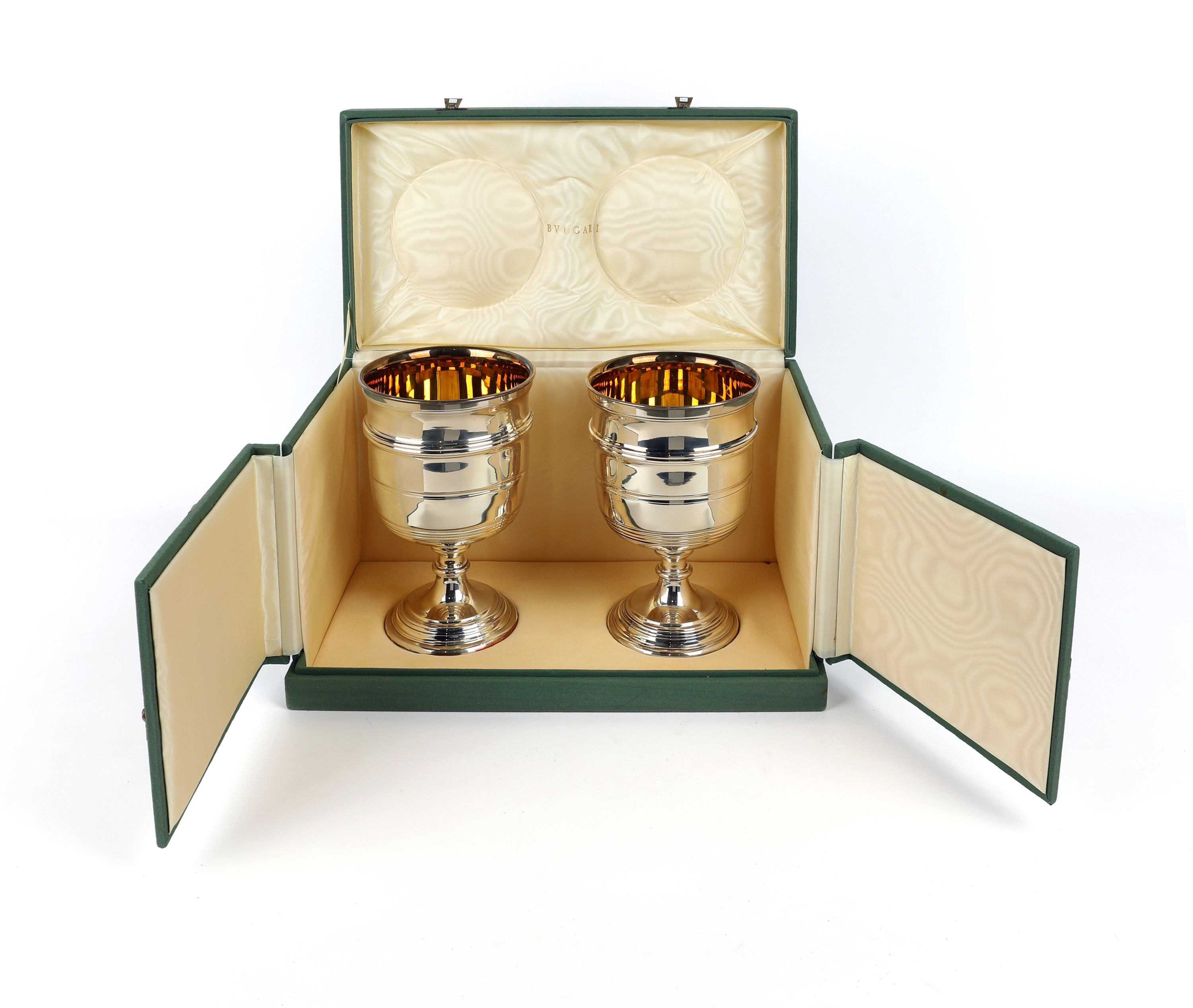 Coppia di coppe in argento sterling, Bulgari, Italia, XX secolo