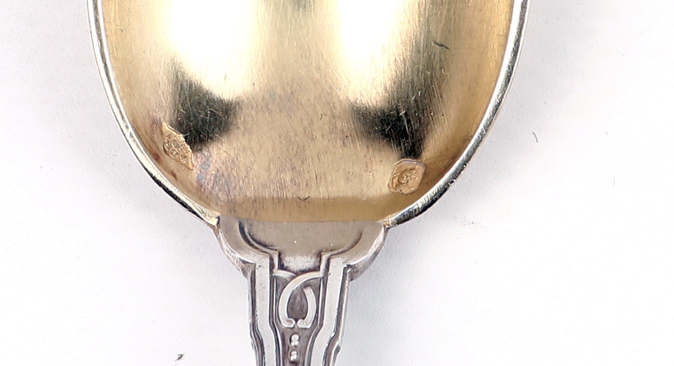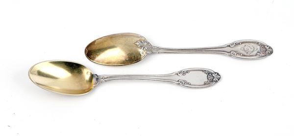 Dodici cucchiai da dessert con monogramma e astuccio, Francia XIX secolo