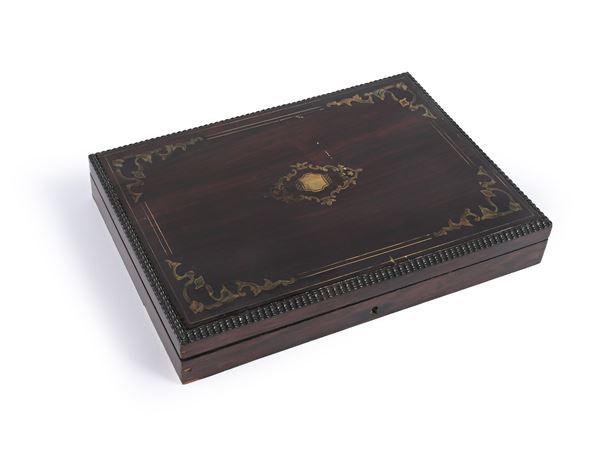 Dodici cucchiai da tè, colino, cucchiaio dosatore e pinze da zolletta con cofanetto in legno