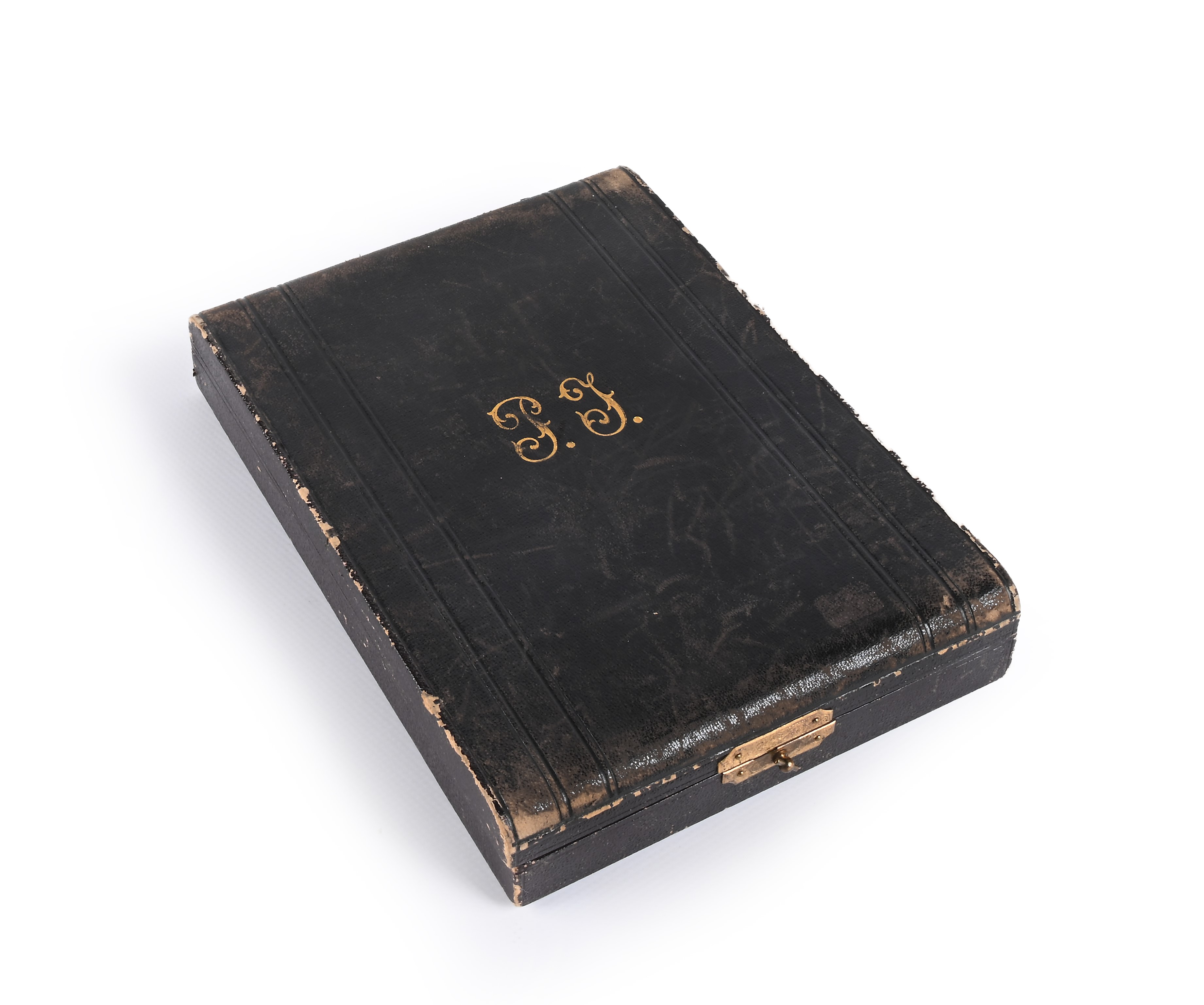 al verso del coperchio: "Orfévrerie de la Bourse, Ancienne Maison E. De Waele, H. Mathieu Successeur, Argenterie de table, Orféverie de luxe, argent controlé, rue de la Bourse 44, Bruxelles"