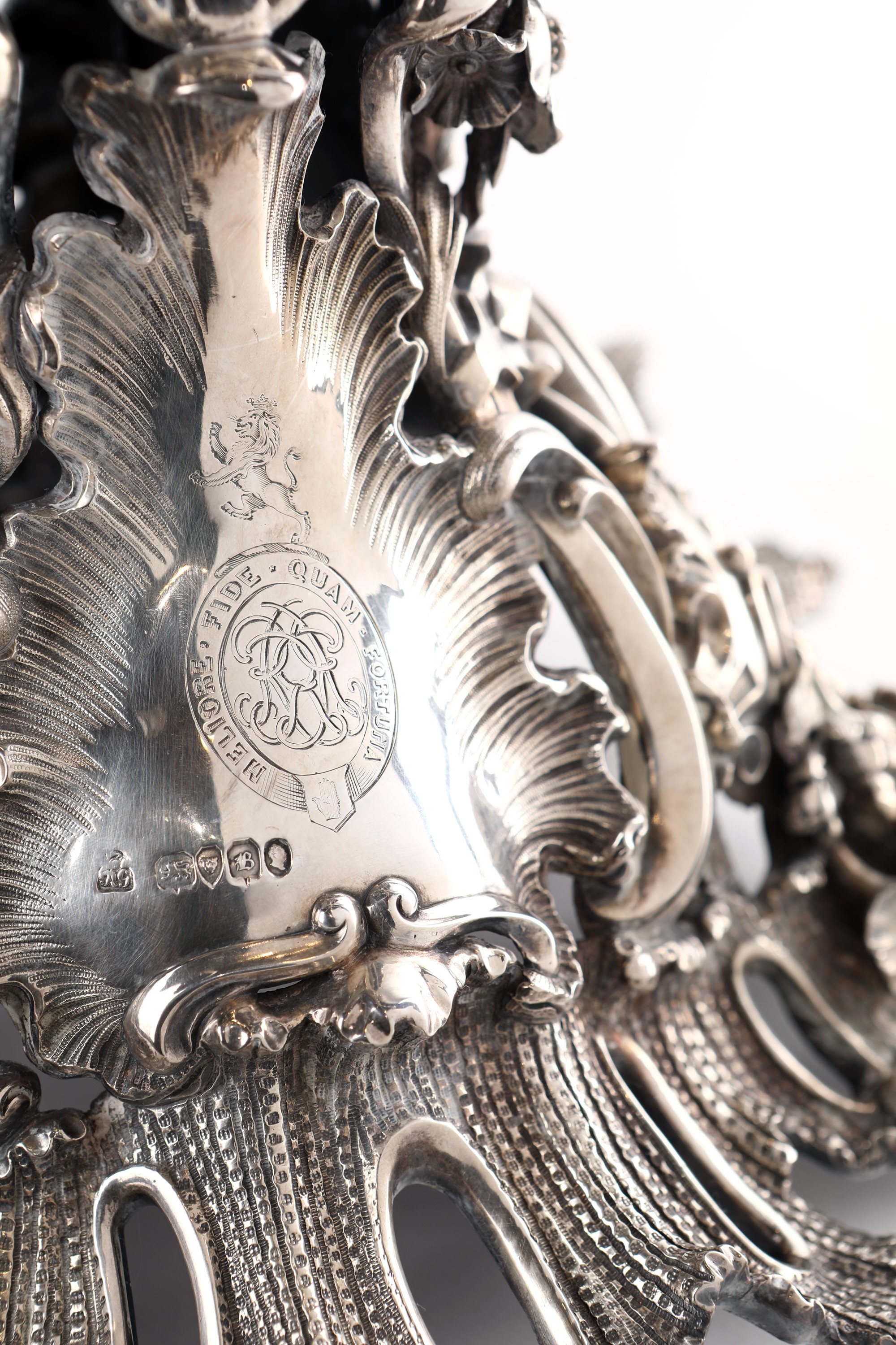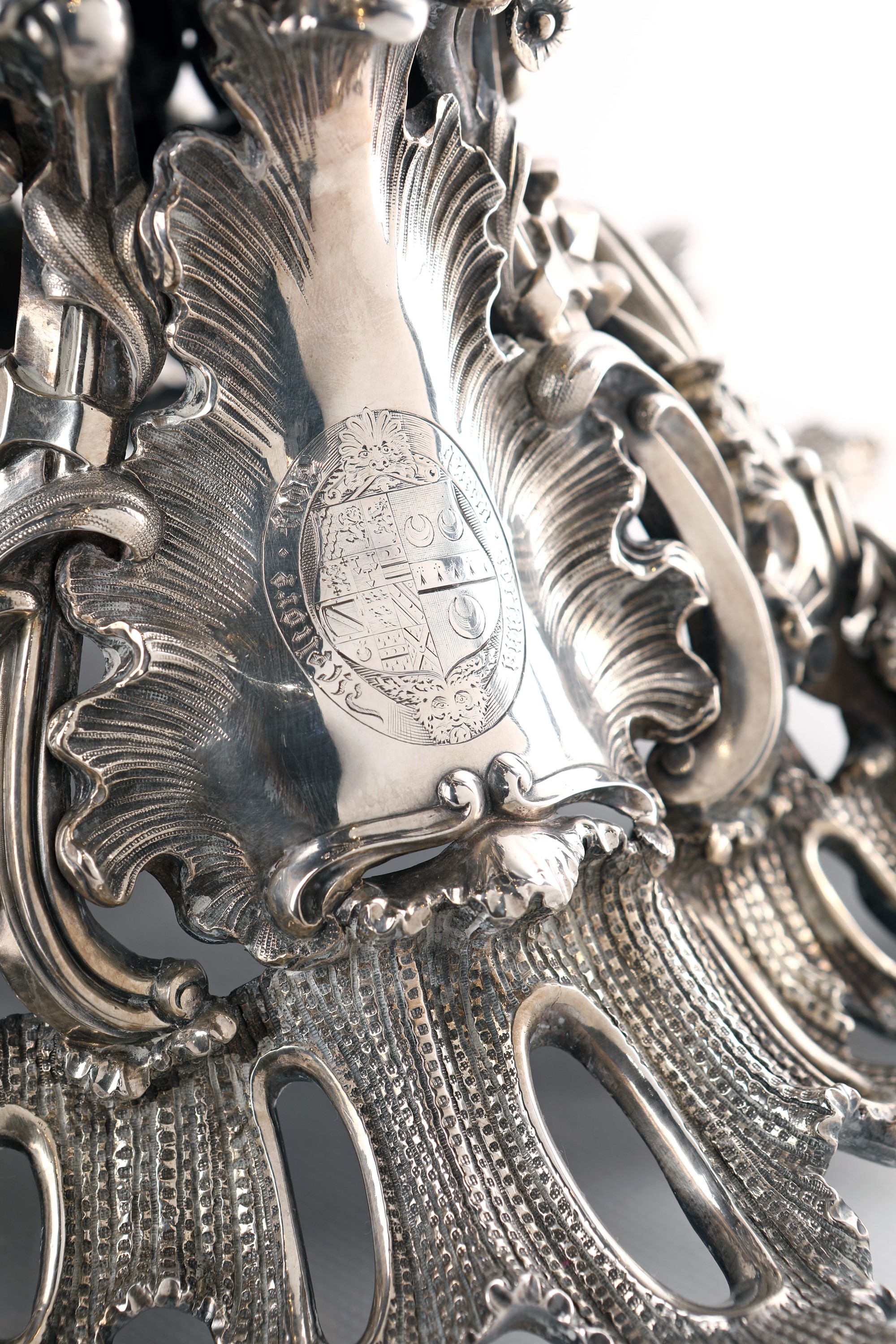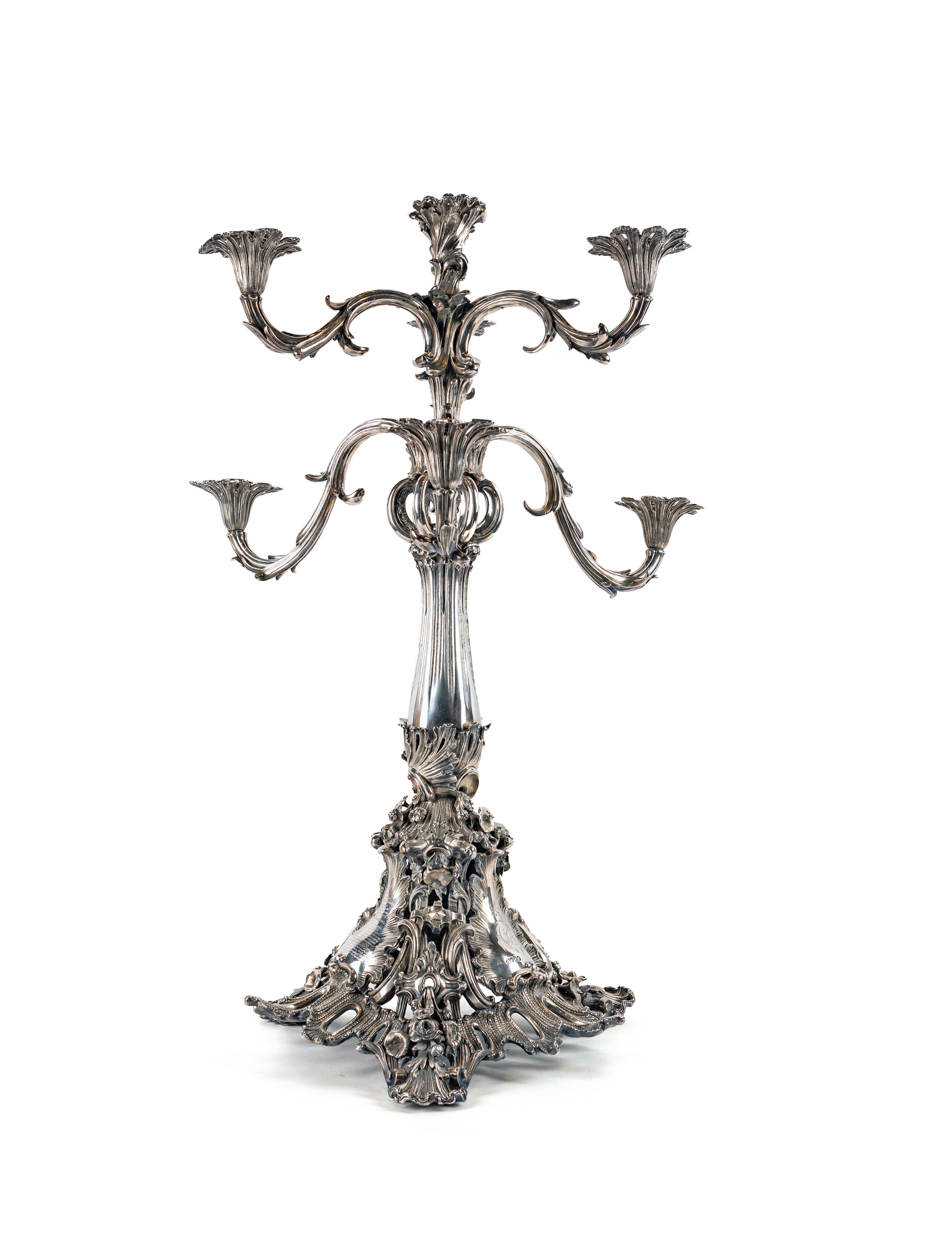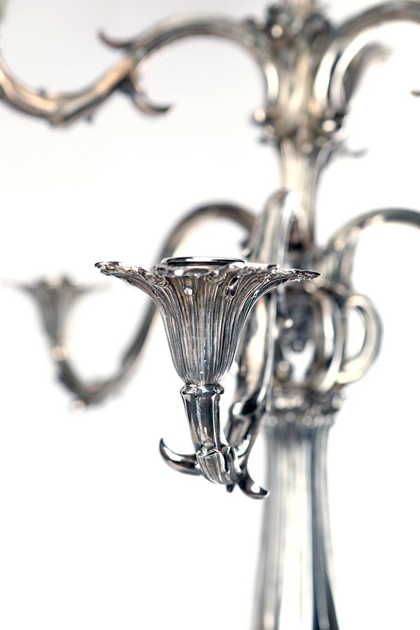 Grande candelabro in argento sterling a sette luci, Londra 1837, argentiere Robert Garrard