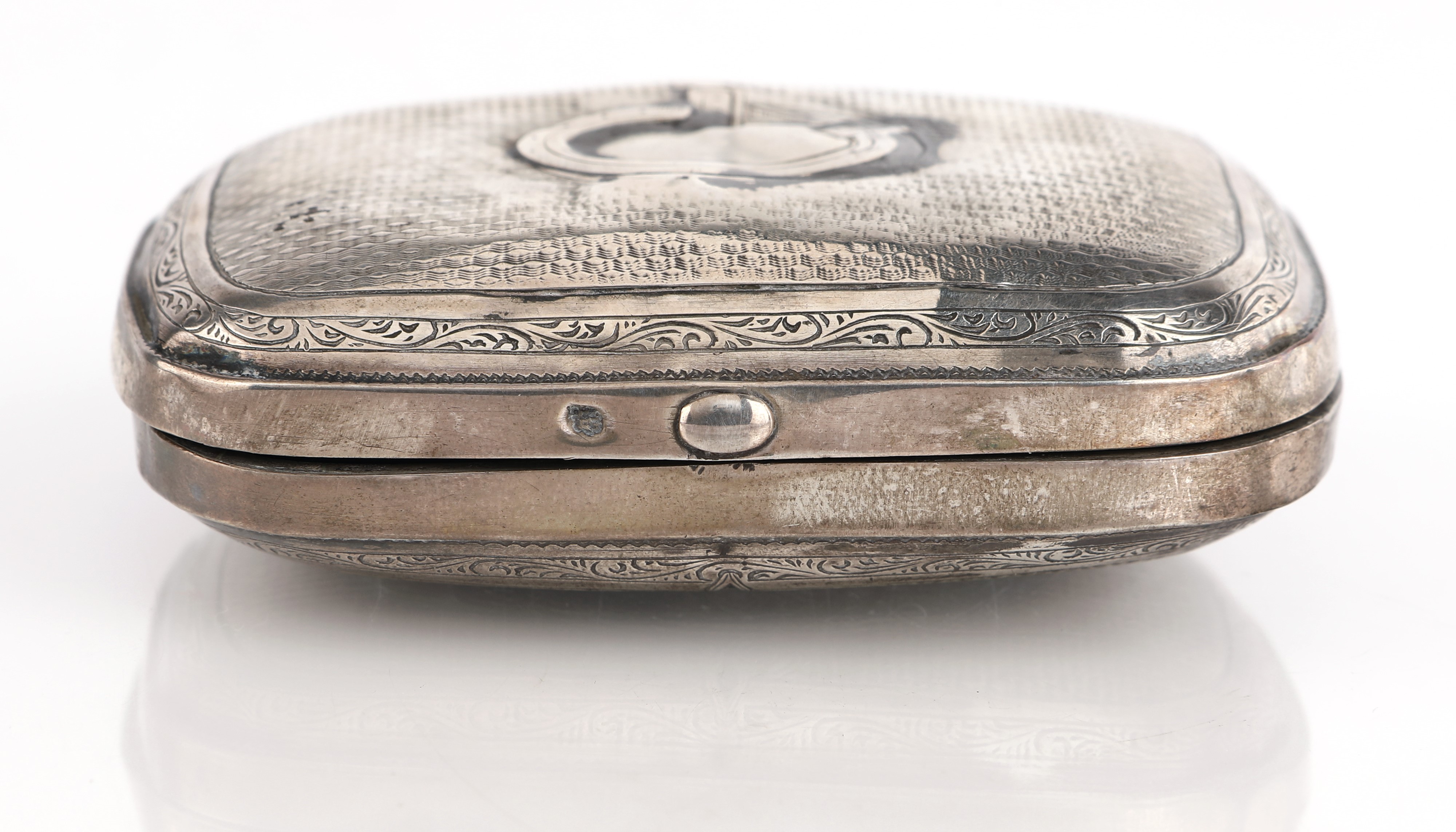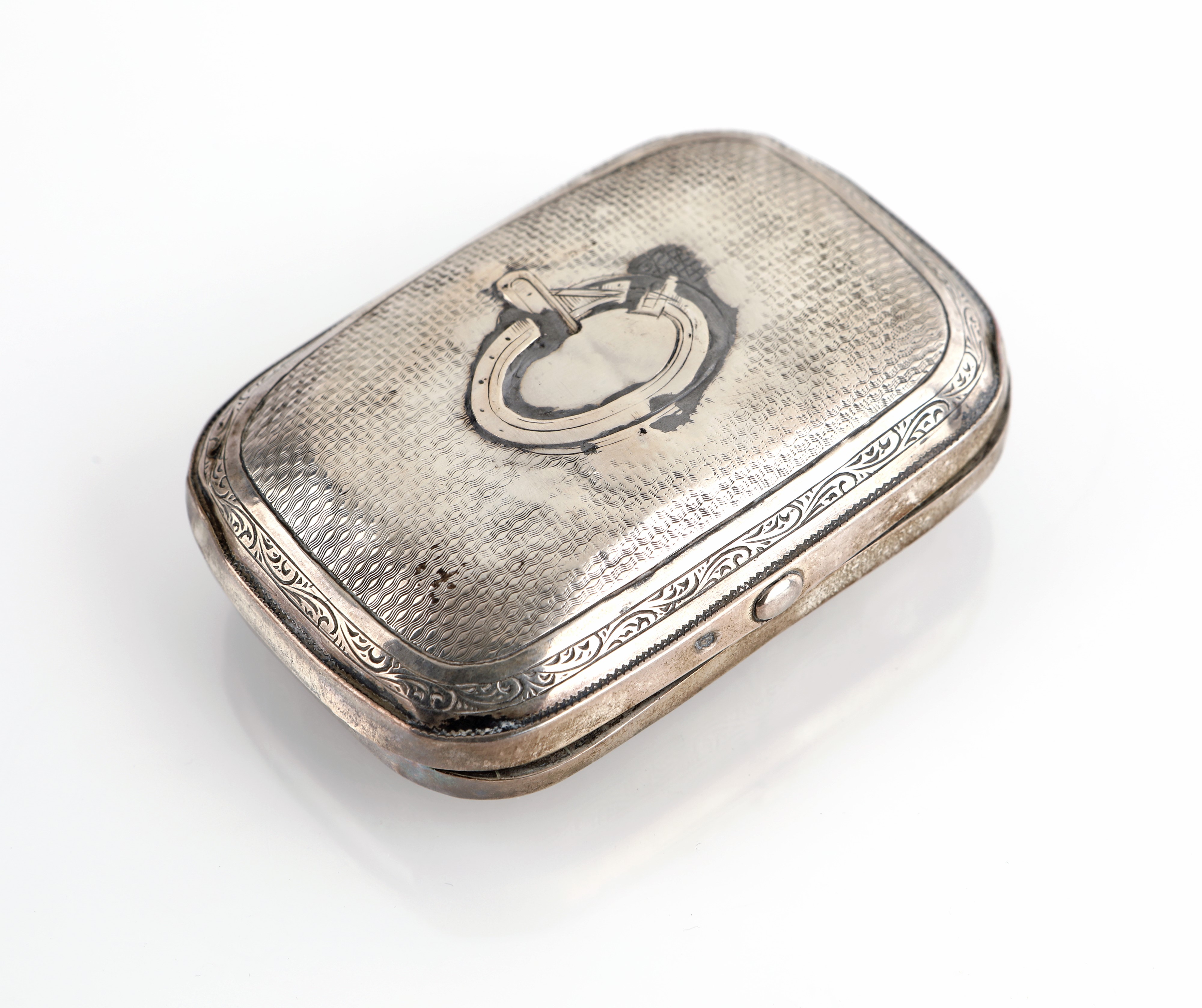 Scatola portatabacco in argento niellato e bulinato, Gran Bretagna, XIX secolo