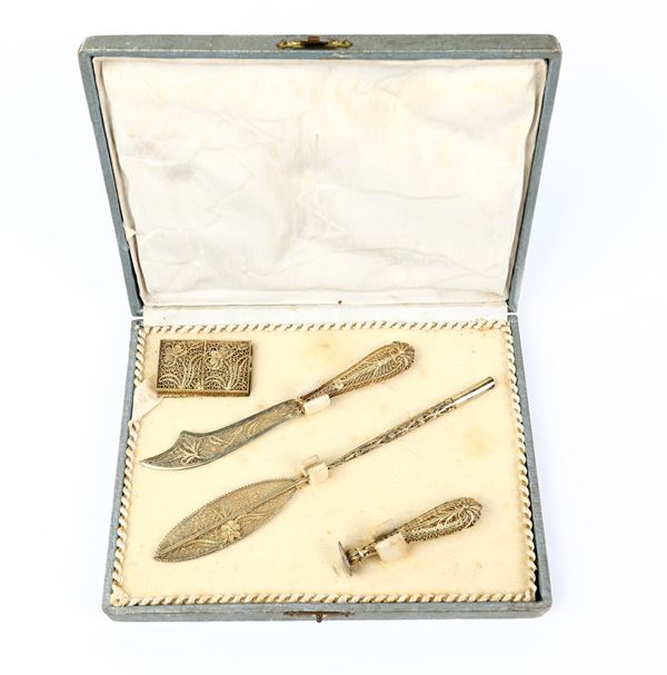 Servizio da scrivania in filigrana d'argento dorato, fine del XIX secolo