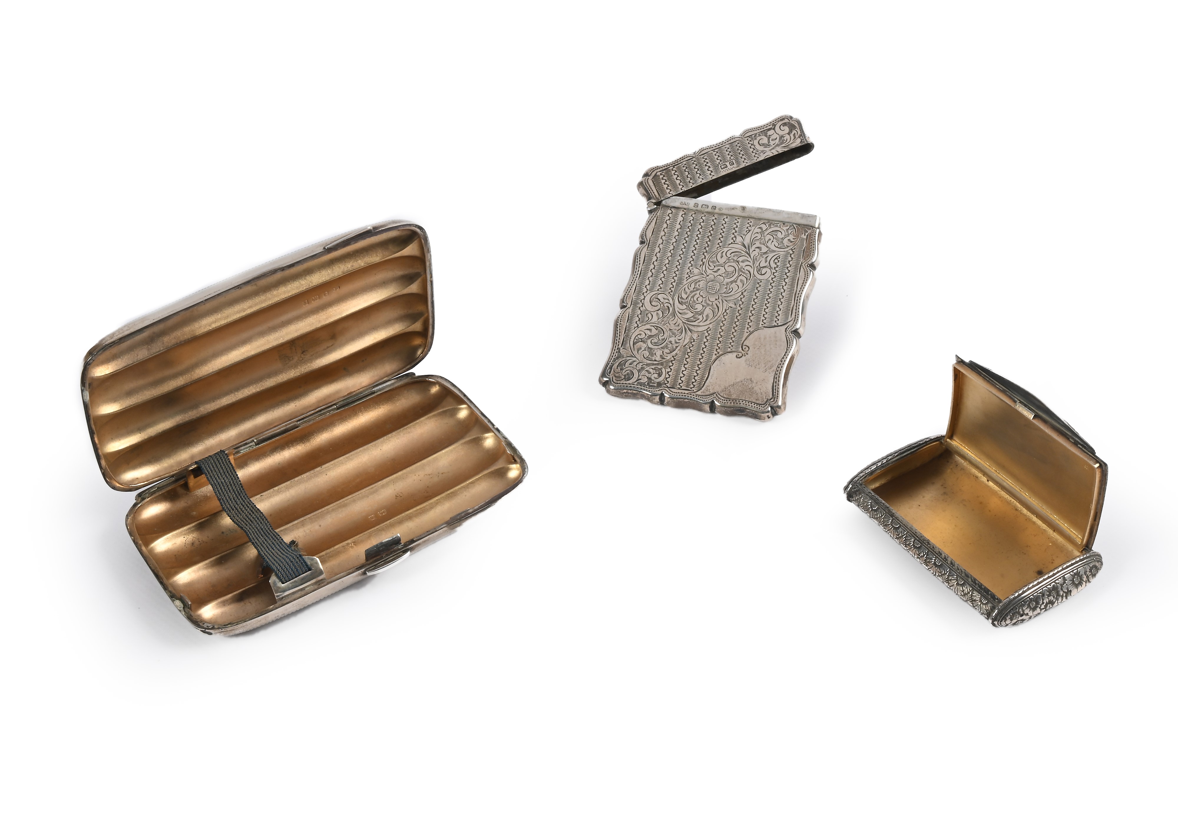 Tabacchiera, porta biglietti e portasigari in argento, Birmingham