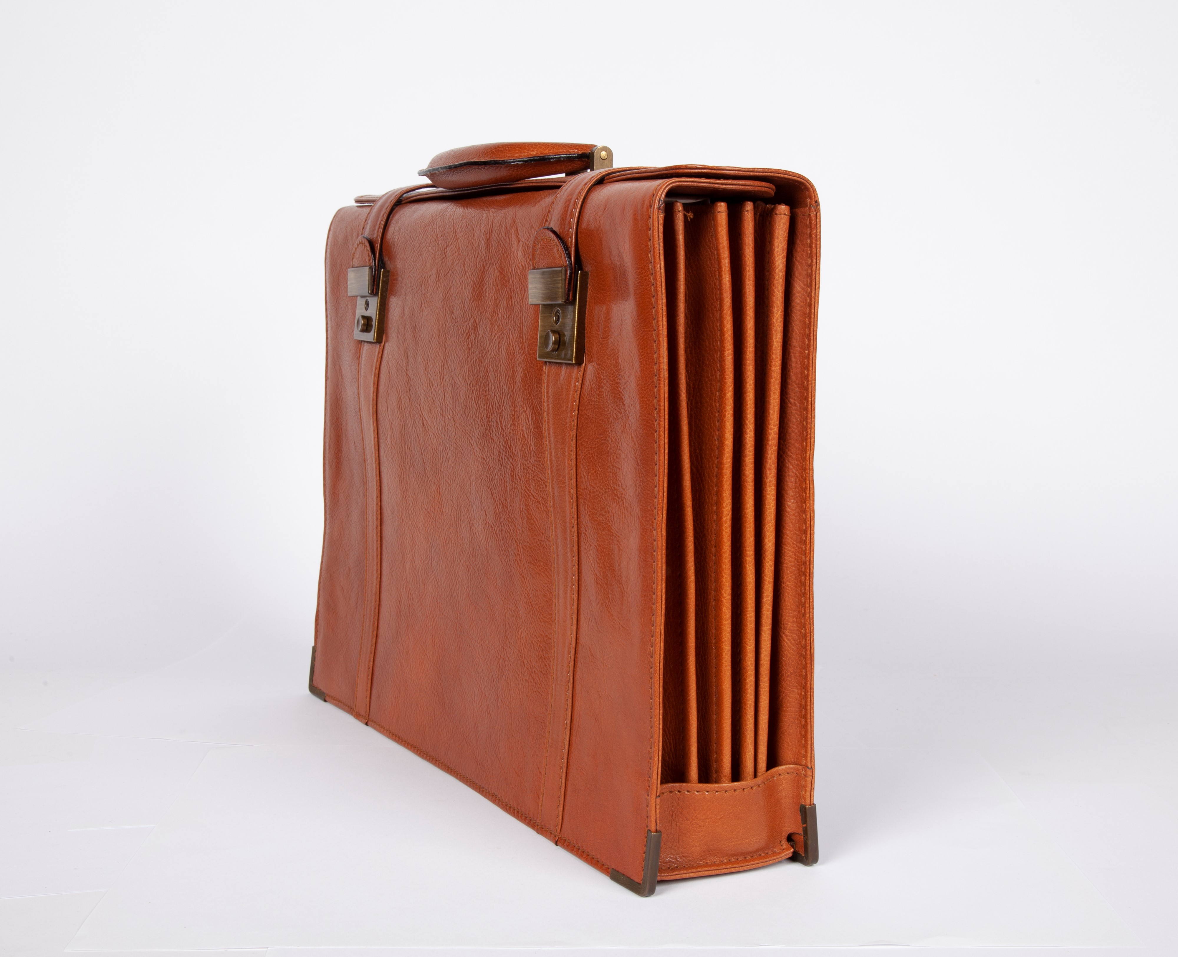 Interno a soffietto con sei scomparti di cui uno con zip. Come nuova.