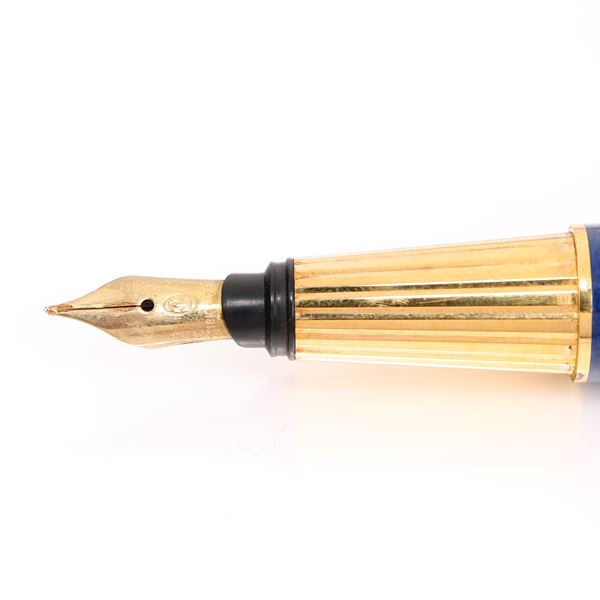 Cartier Pasha Edizione limitata 1989 - Penna stilografica in vernice lapislazzulo e metallo dorato in oro a più colori con zaffiro cabochon sul cappuccio