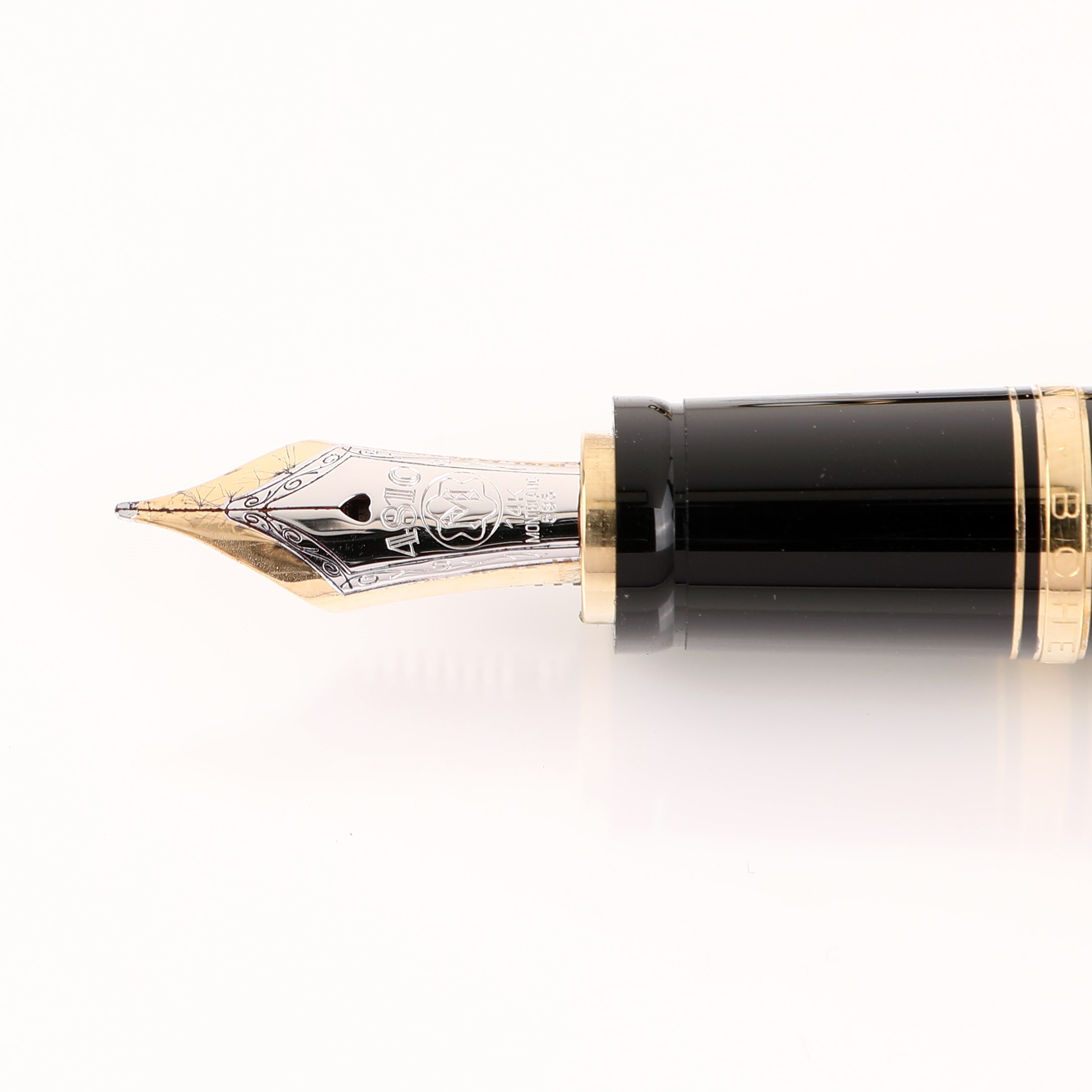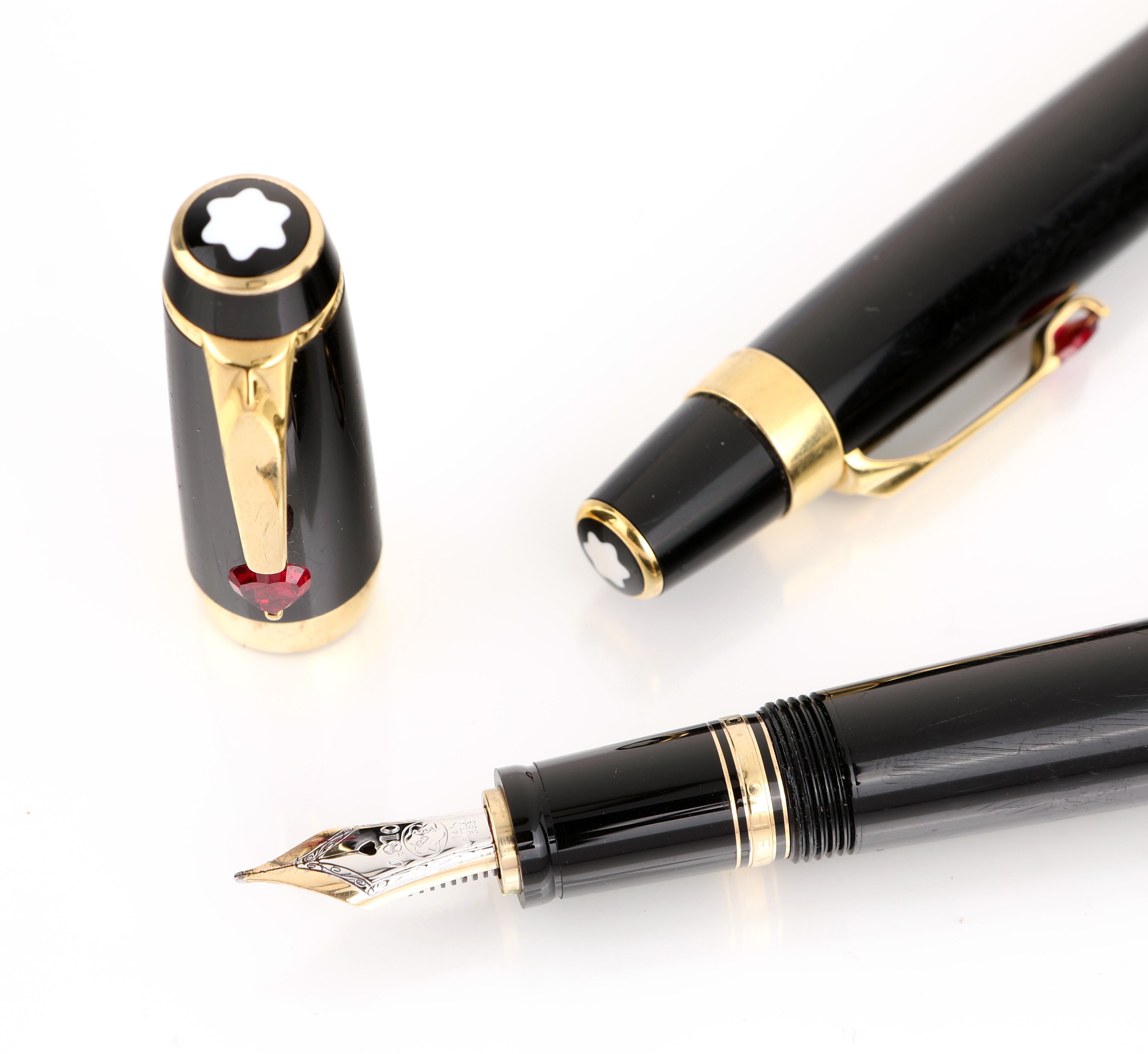 Montblanc Boheme - Penna stilografica retrattile e Penna a sfera in vernice nera con particolari dorati e pietra rossa