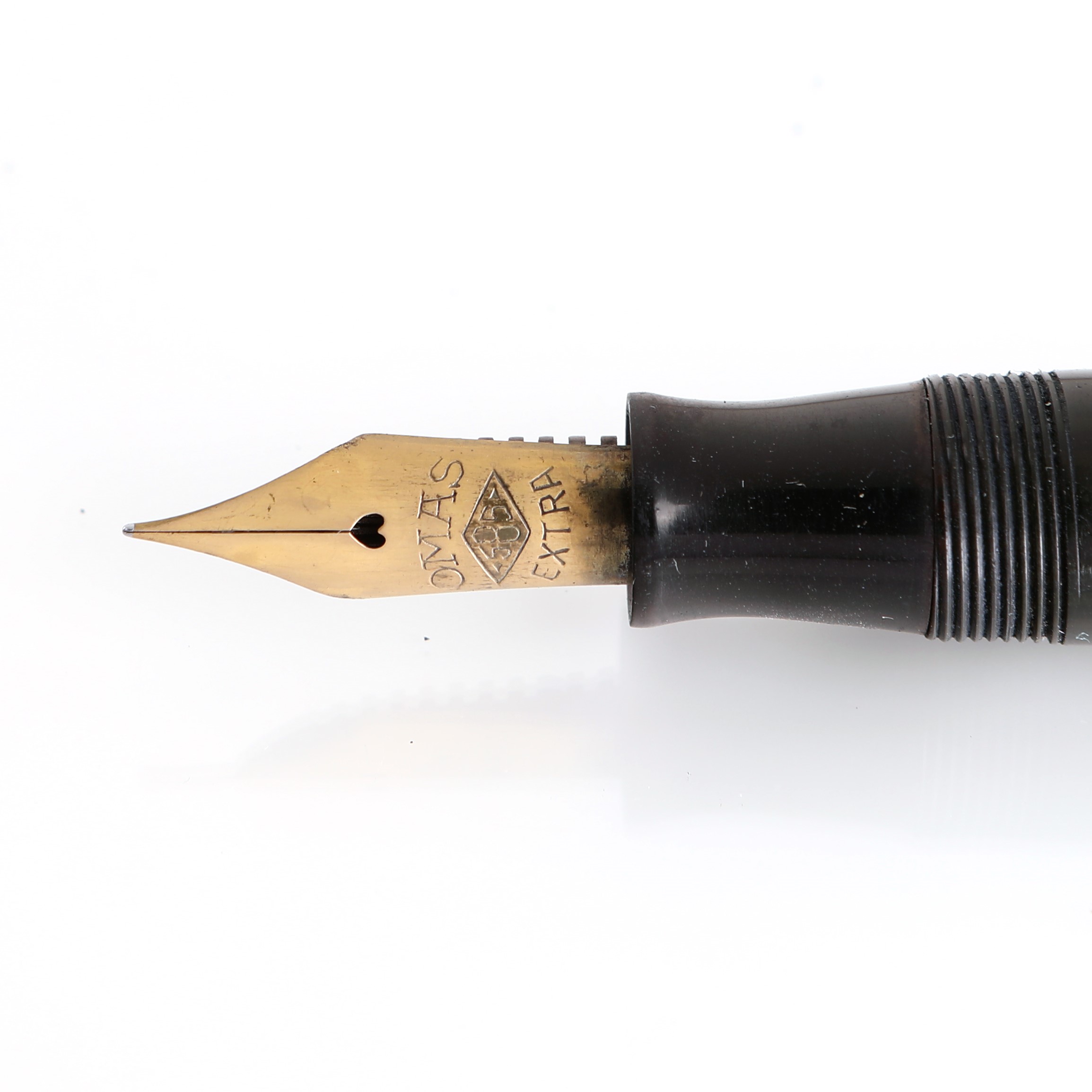 Omas Extra - Penna stilografica vintage in celluloide nera con particolari dorati, anni '30