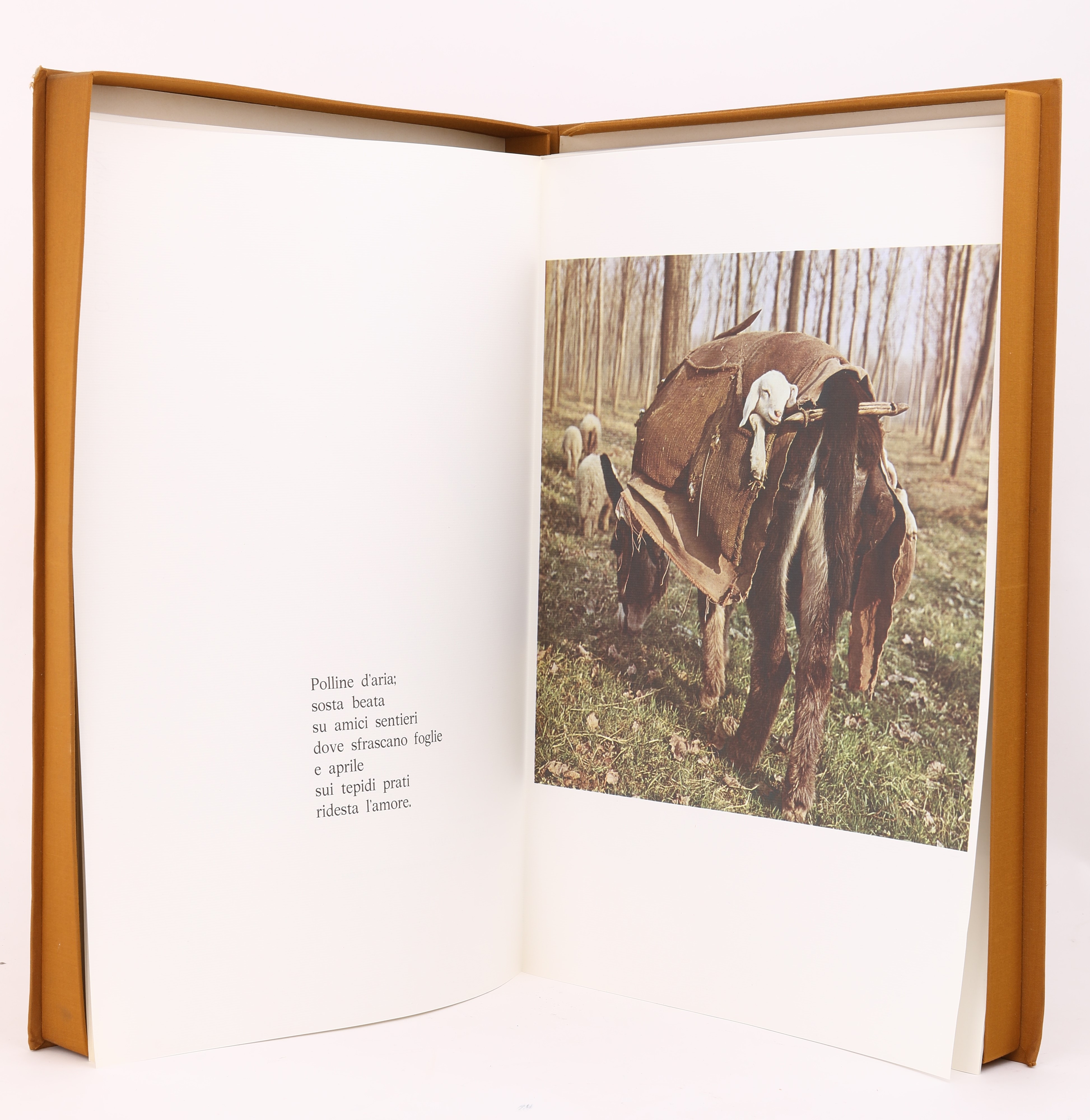 Tiratura limitata a 500 esemplari numerati, ns esemplare n.86. 1 foglio doppio con frontespizio e presentazione di Francesco Rosso e 42 fogli liberi doppi con breve testo e grande illustrazione fotografica a colori. Entro cofanetto in tela originale con titoli a stampa.