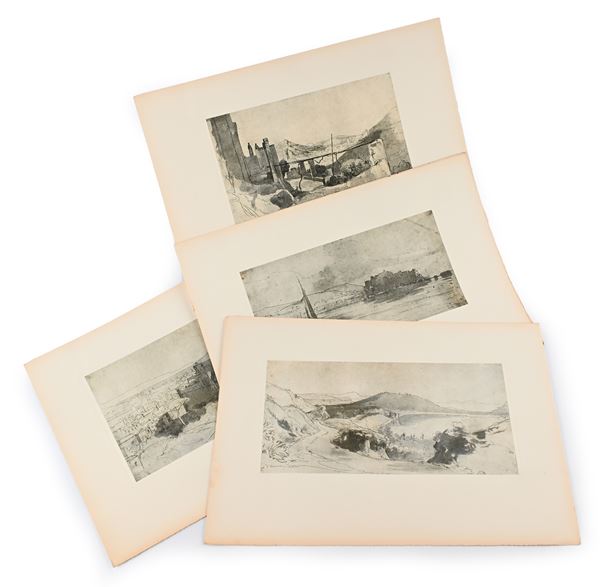 Cartella in cartonato contente XII Incisioni tratte da vedute di Giacinto Gigante, realizzata in tiratura limitata in occasione del Symposium su l'acido tioctico. Esemplare ad personam.