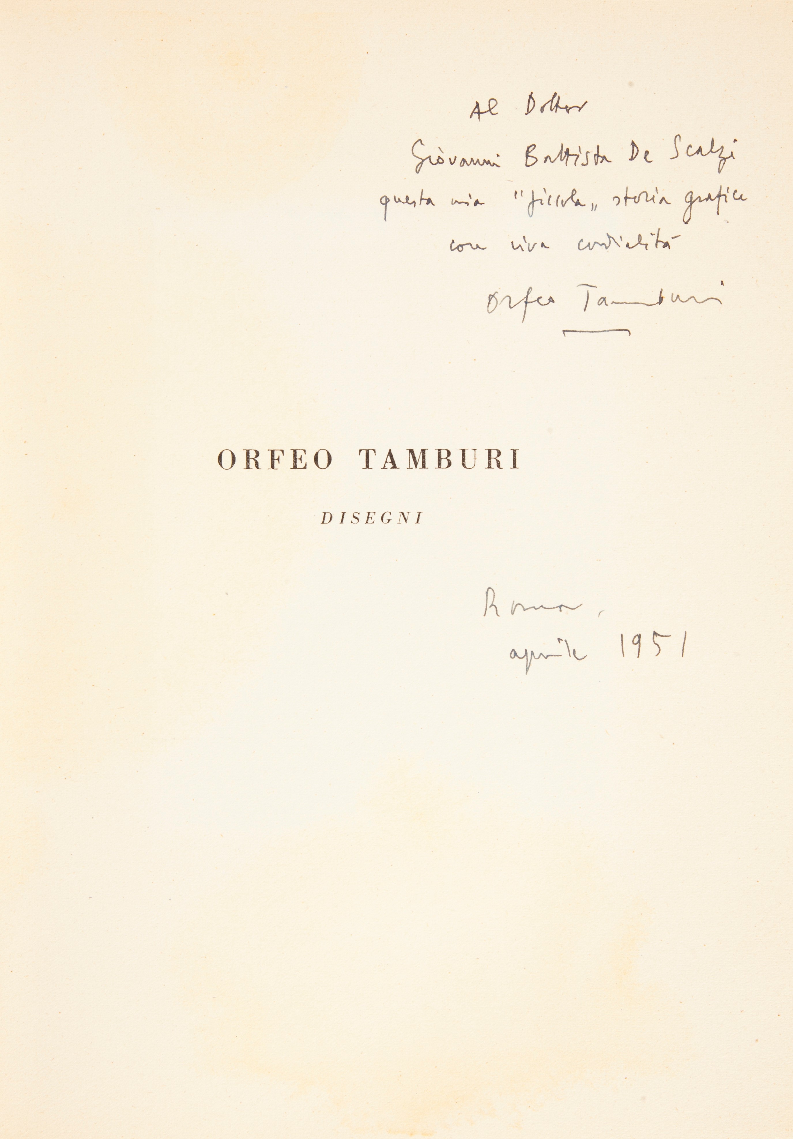 Marcel Sauvage - Orfeo Tamburi (Esemplare in tiratura limitata con dedica autografa del maestro Tamburi datata Roma 1951), Collezione dell'Obelisco, Roma 1949
