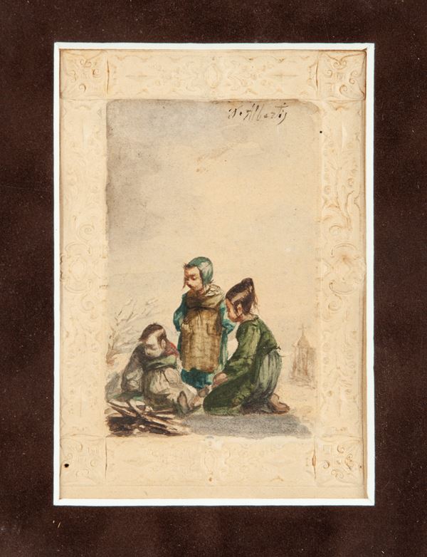 Foglio con decorazione impressa lungo il perimetro. Firmato in alto a destra "de Albertis"