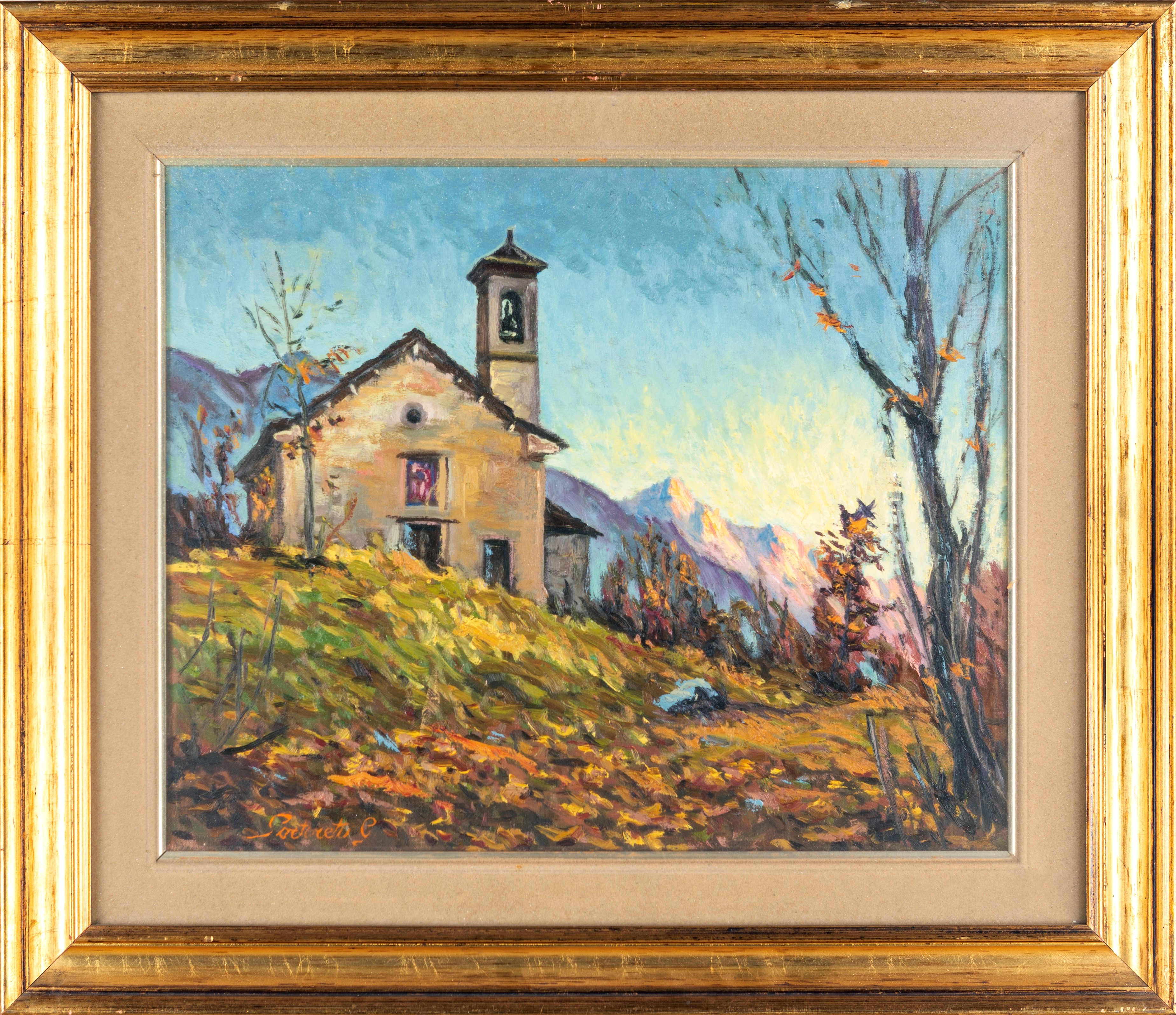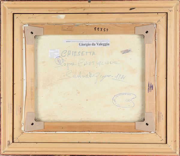 Firmato in basso a sinistra "Sartoretti G."; Firmato, datato e titolato sul retro "Chiesetta sopra Castiglione. Sartoretti Giorgio 1981"