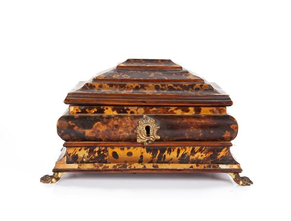 di forma rettangolare con struttura modanata e lastronata ; piedi ferini in bronzo