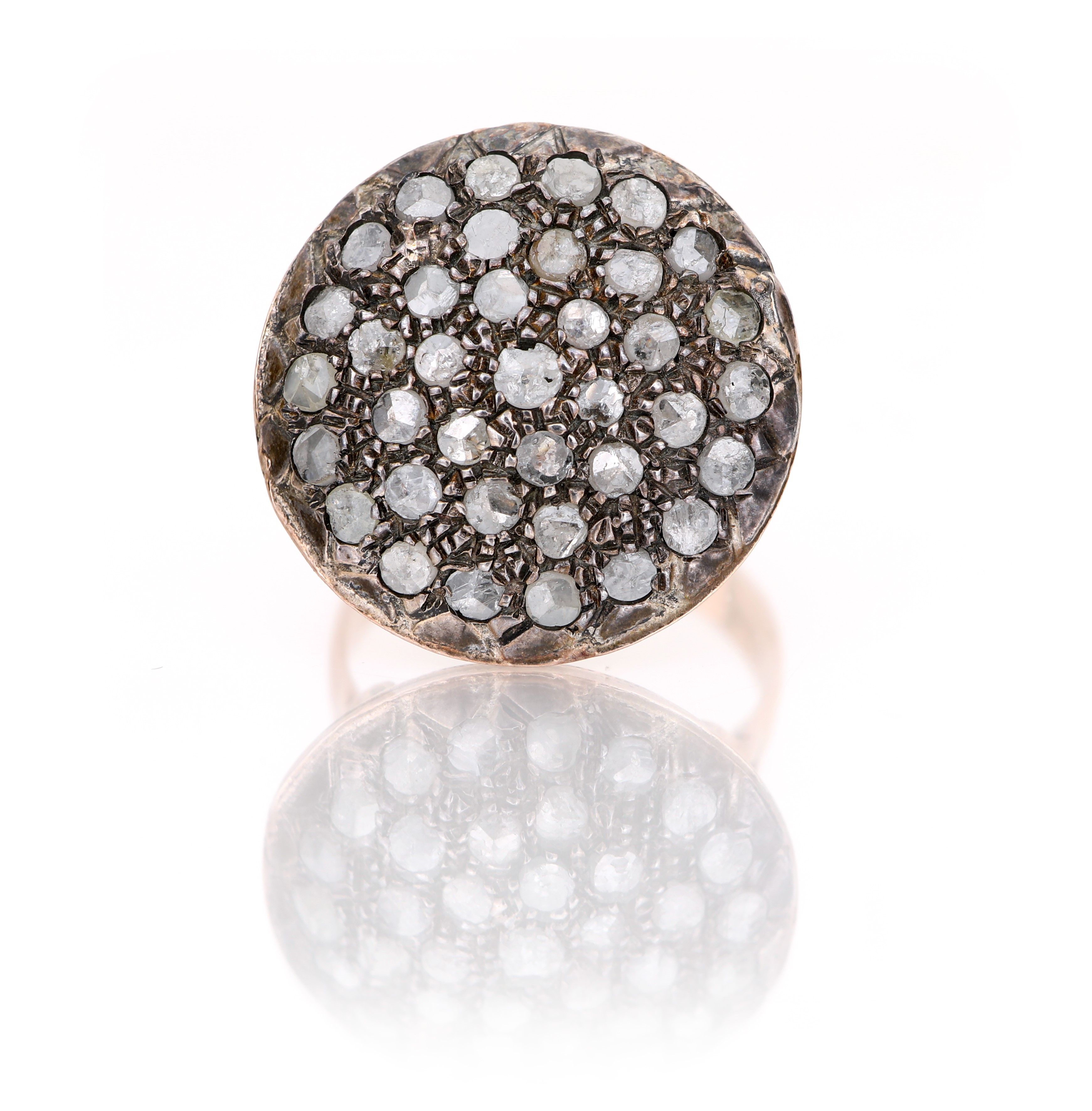 Oro a basso titolo, argento, diamanti in taglio rosa. Peso complessivo gr 8,30