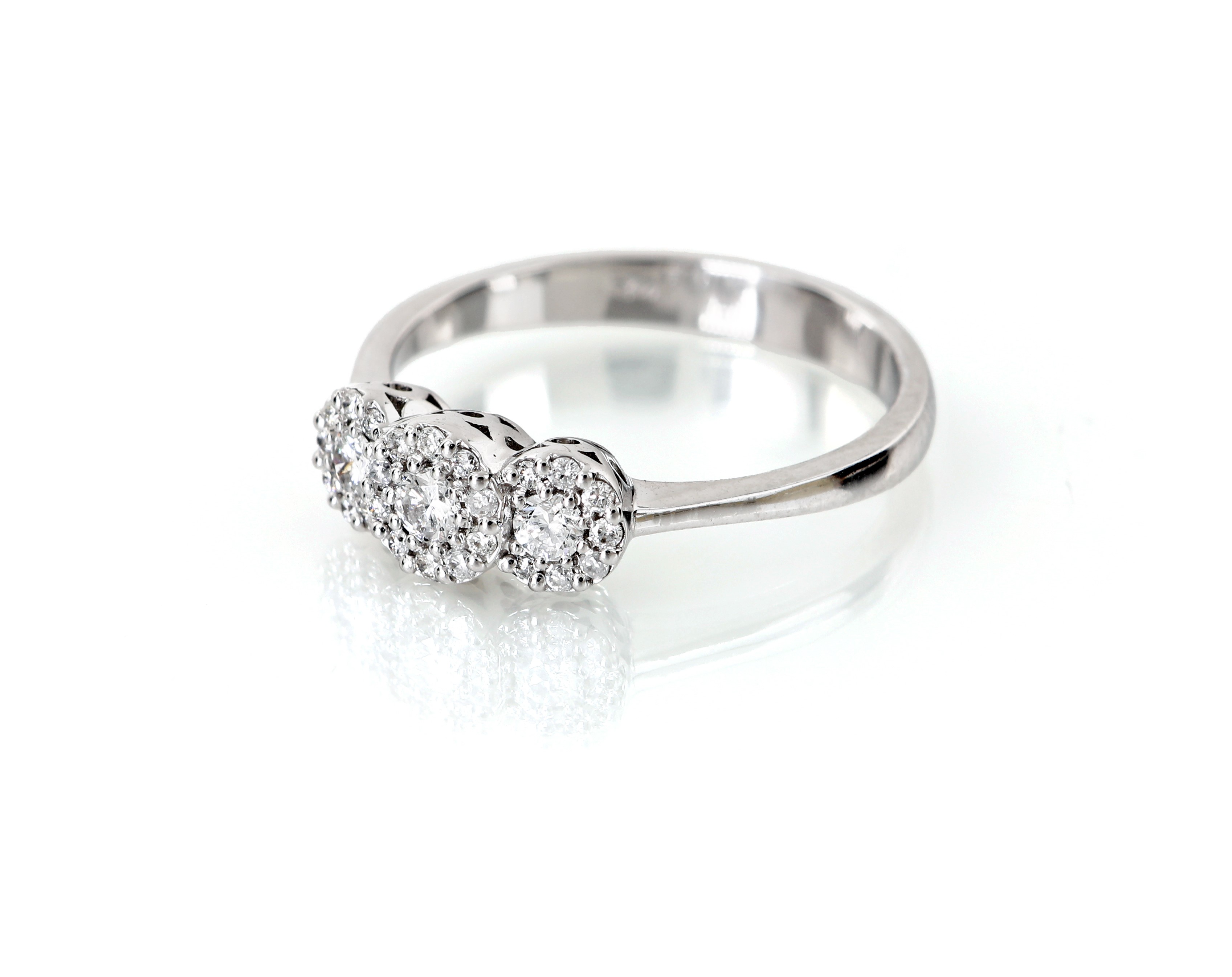 Oro bianco 750/000. Diamanti in taglio rotondo brillante ct. 0,40 ca. Peso complessivo gr. 2,90