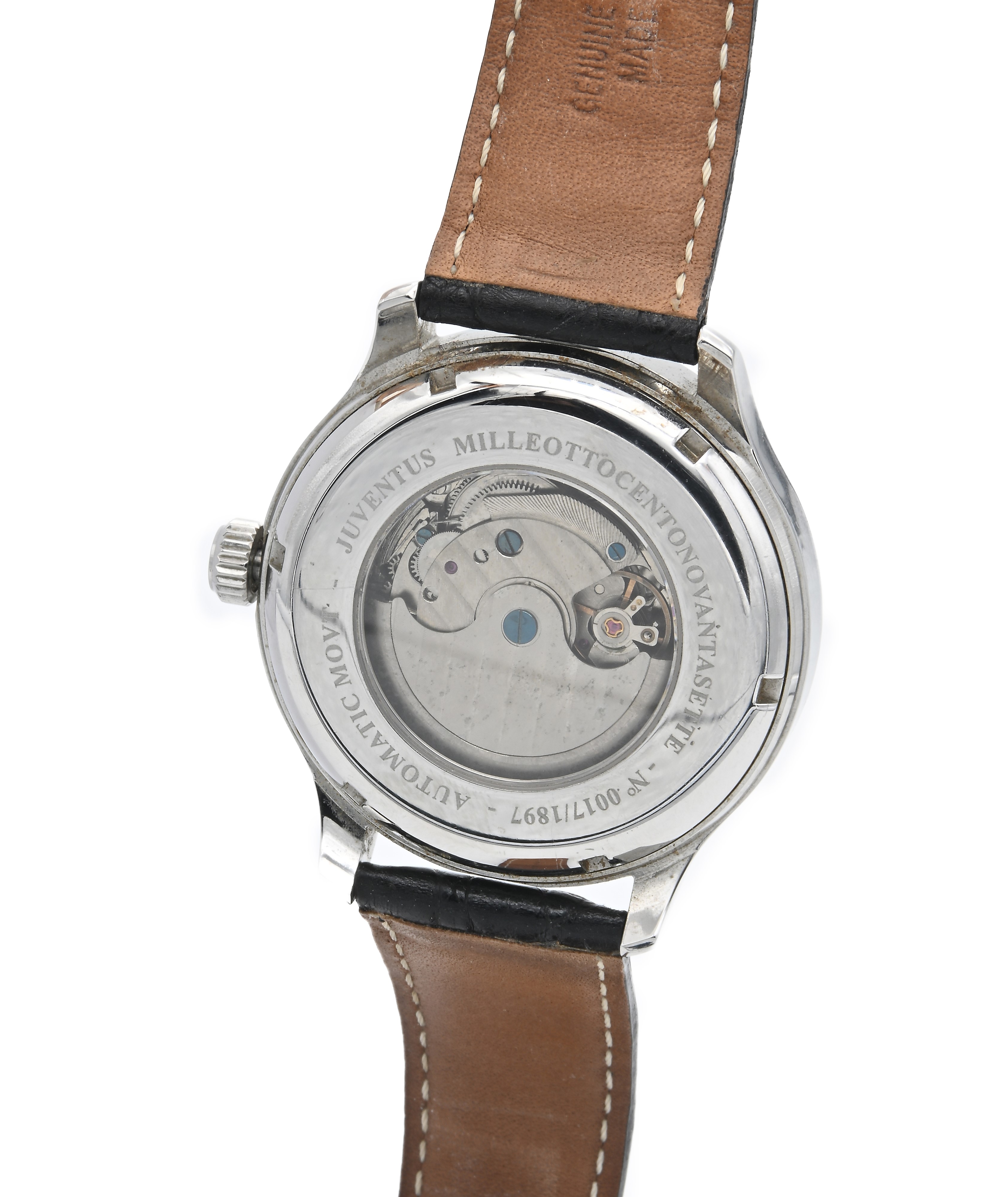 Juventus 1897 - Orologio da polso automatico da uomo in acciaio con datario e fondello scheletrato