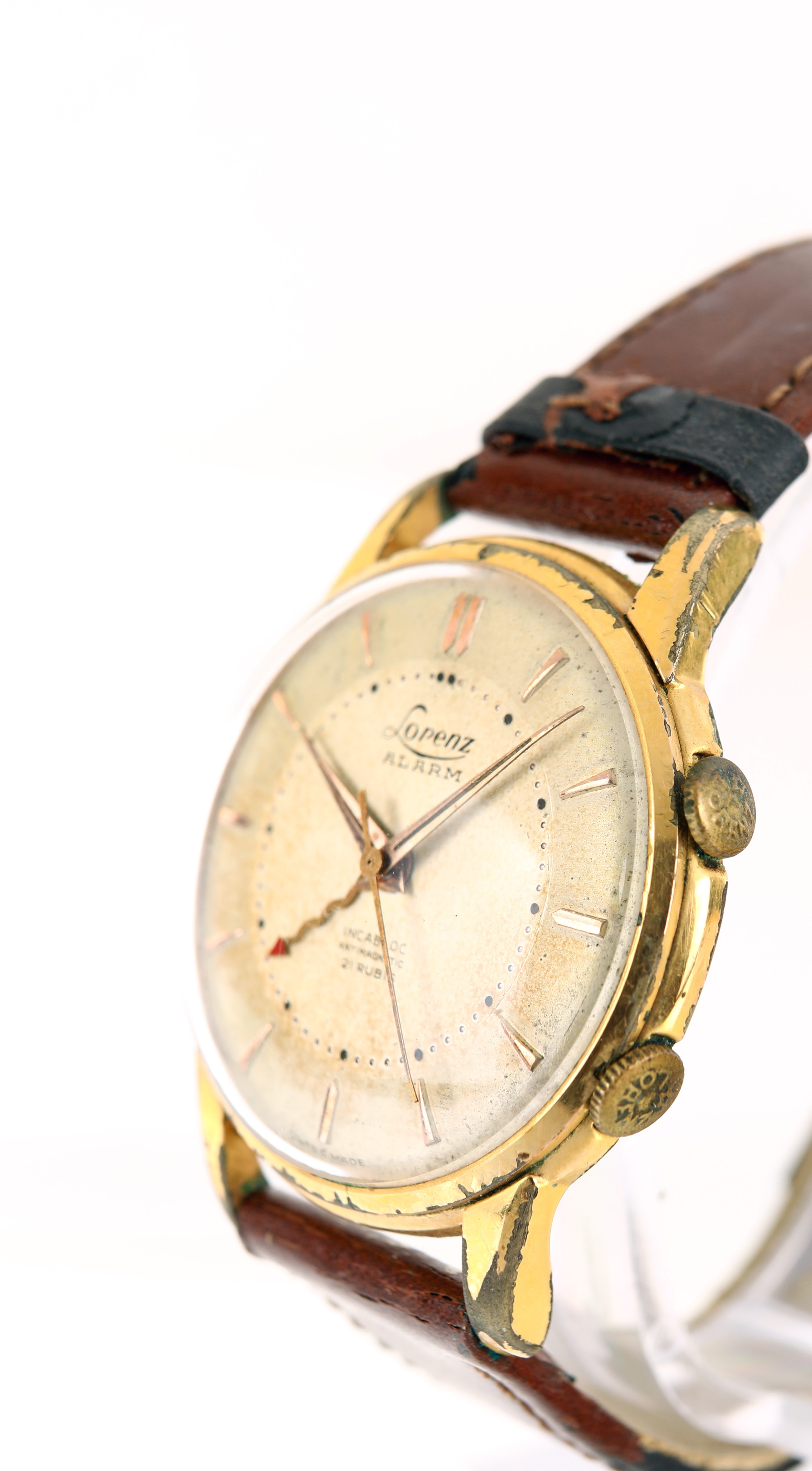 Lorenz 1475 - Orologio da polso con sveglia a carica meccanica da uomo in acciaio e metallo placcato in oro giallo, Anni '50