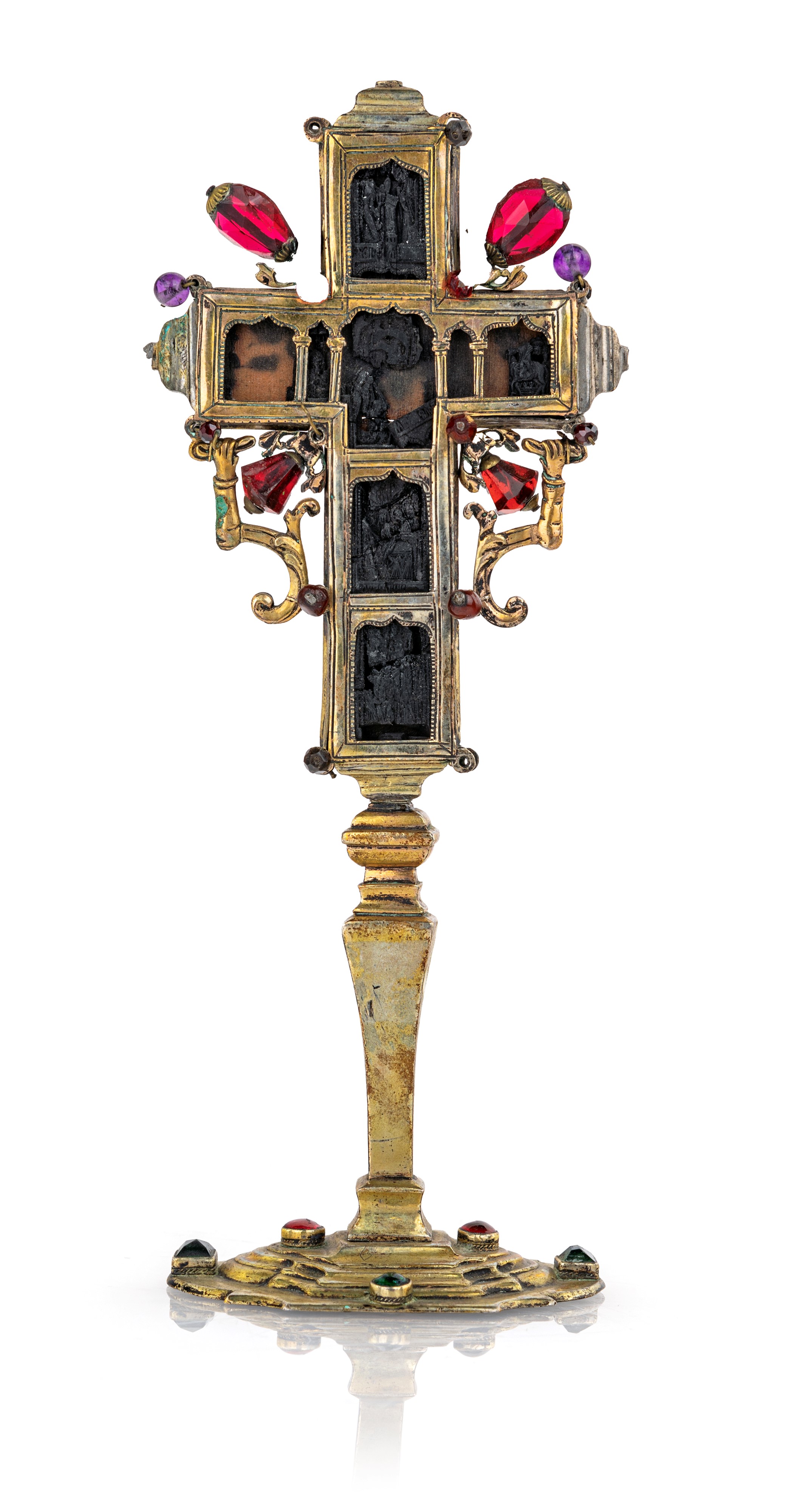 Antica croce del Monte Athos in metallo dorato con gemme multicolore