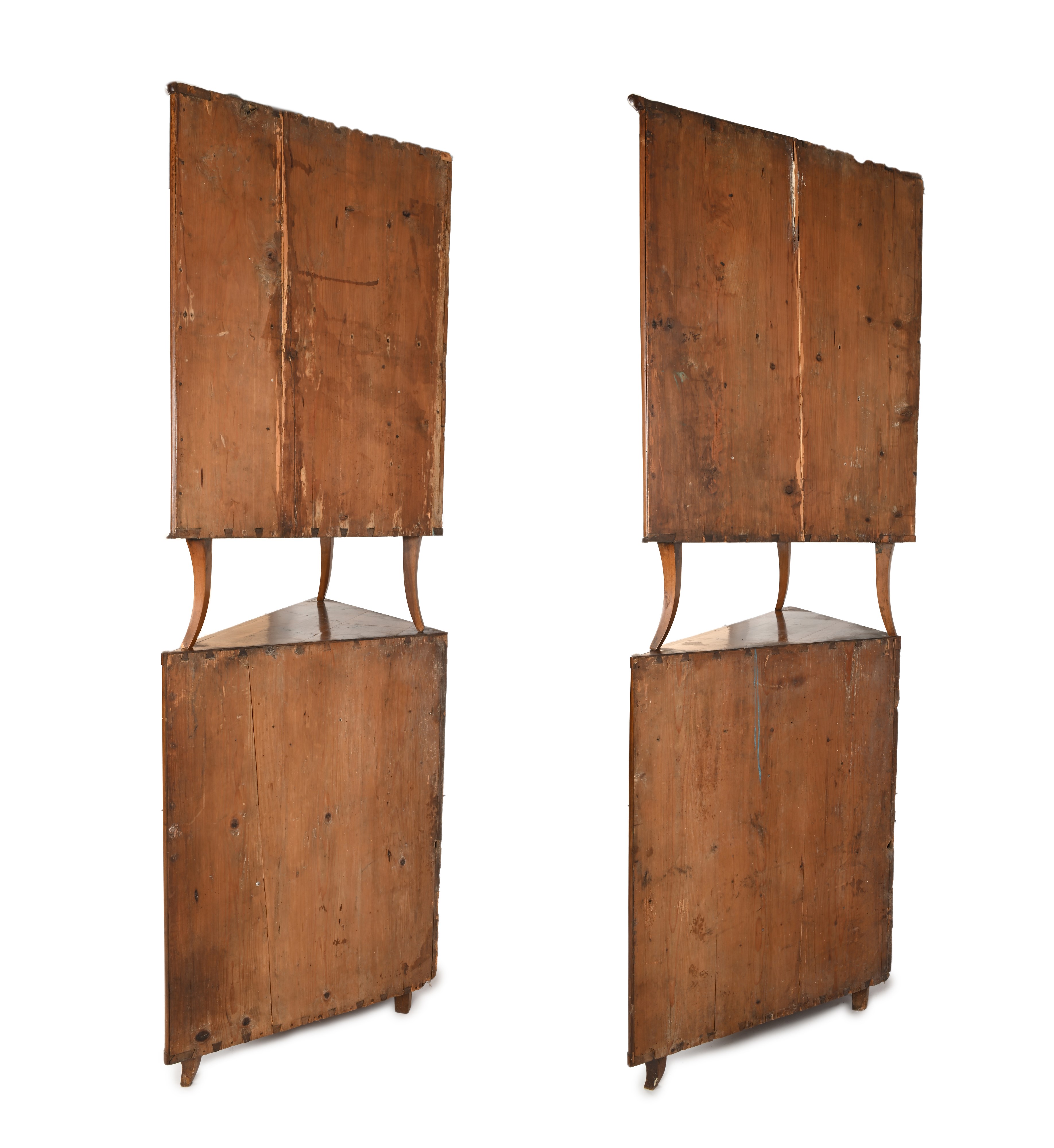 Coppia di angoliere a due corpi in noce, Piemonte, XVIII secolo