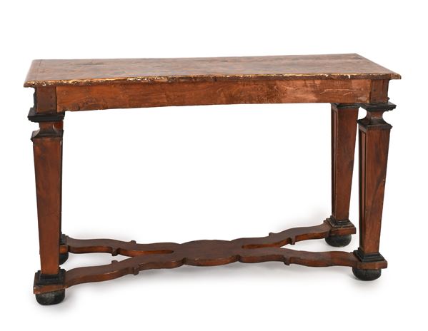 Coppia di consoles in legno con profili ebanizzati, XVIII secolo