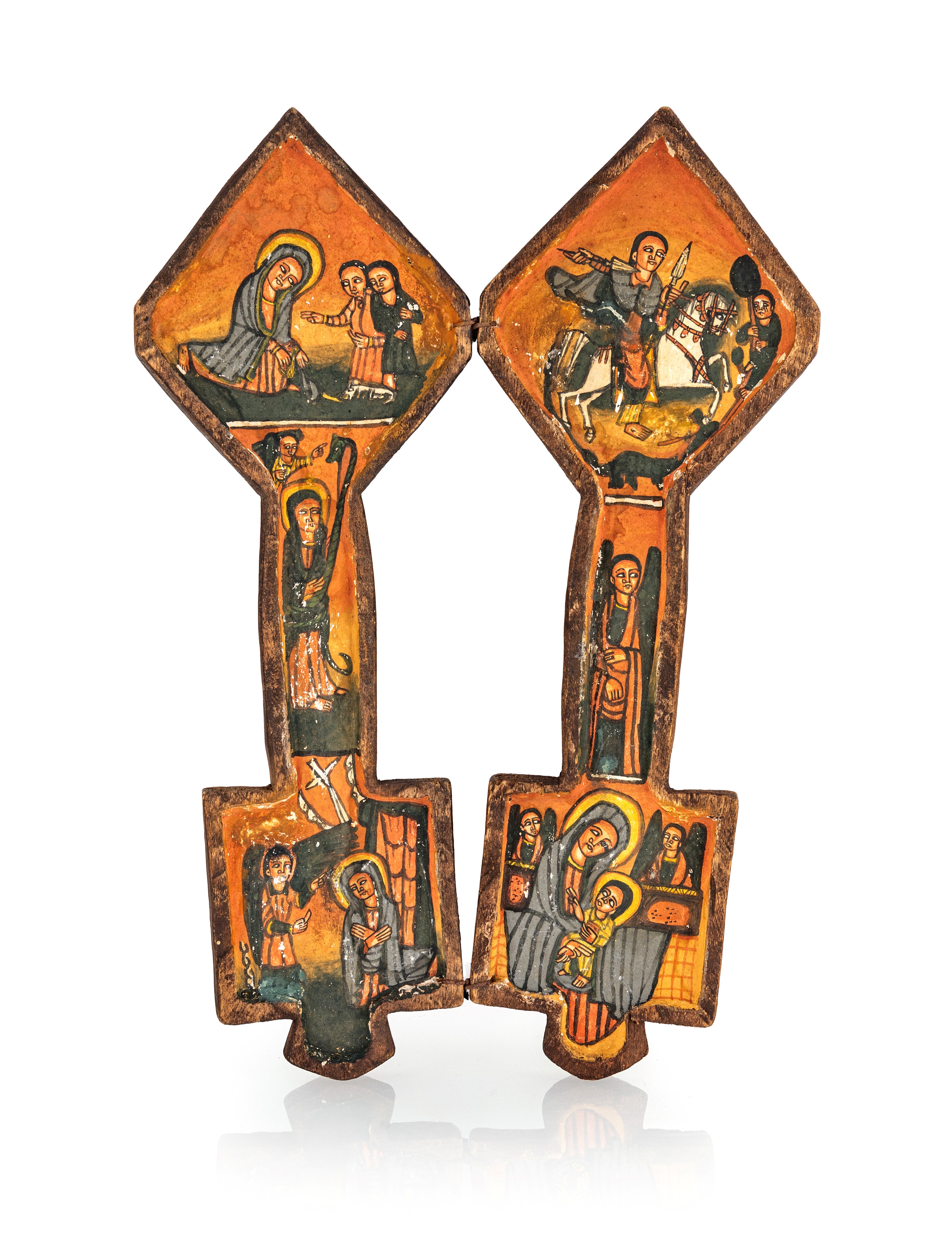 Due icone da viaggio: dittico e altarolo ortodosso in legno dipinto, Etiopia, XX secolo