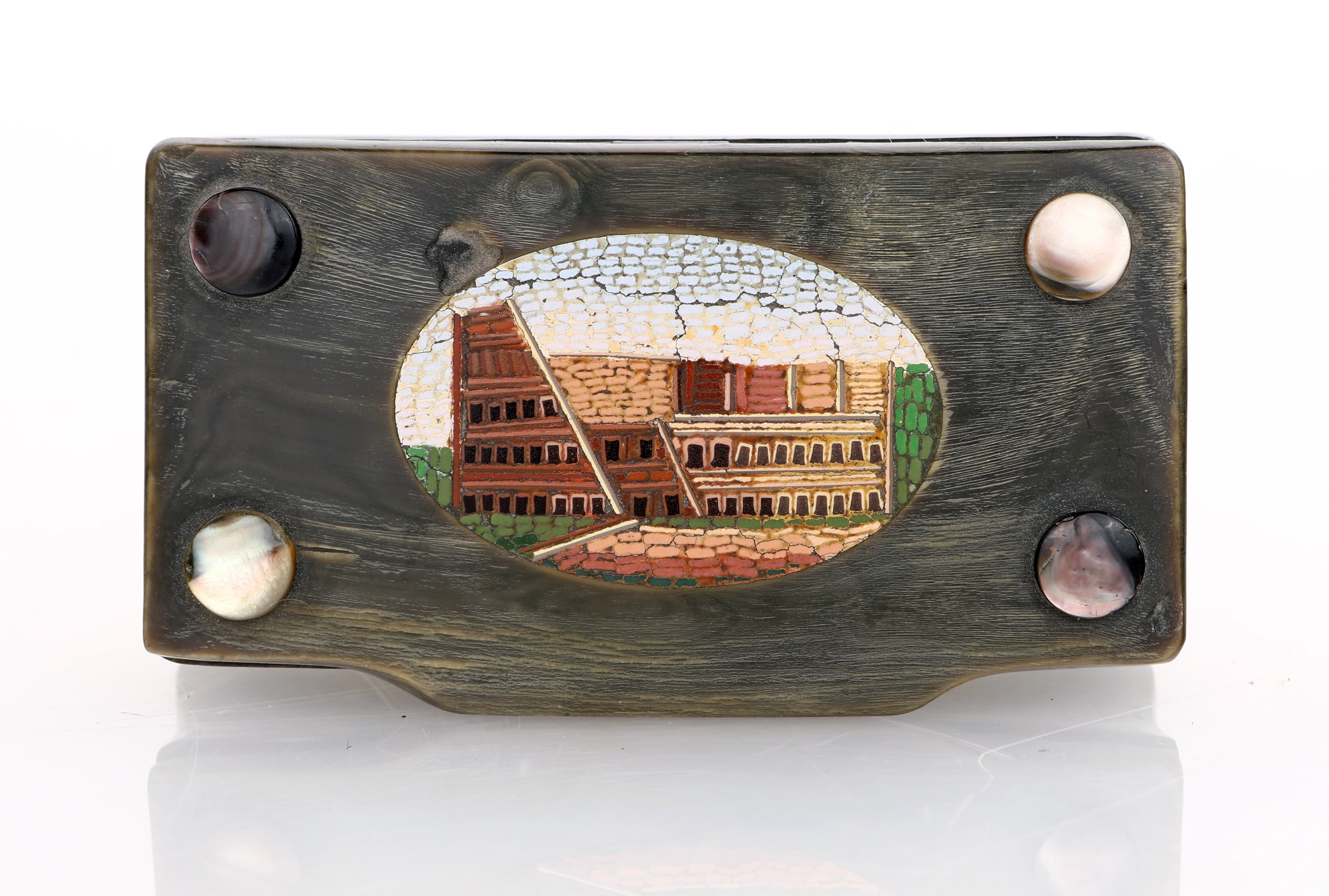 Tabacchiera in corno con mosaico minuto, XIX secolo