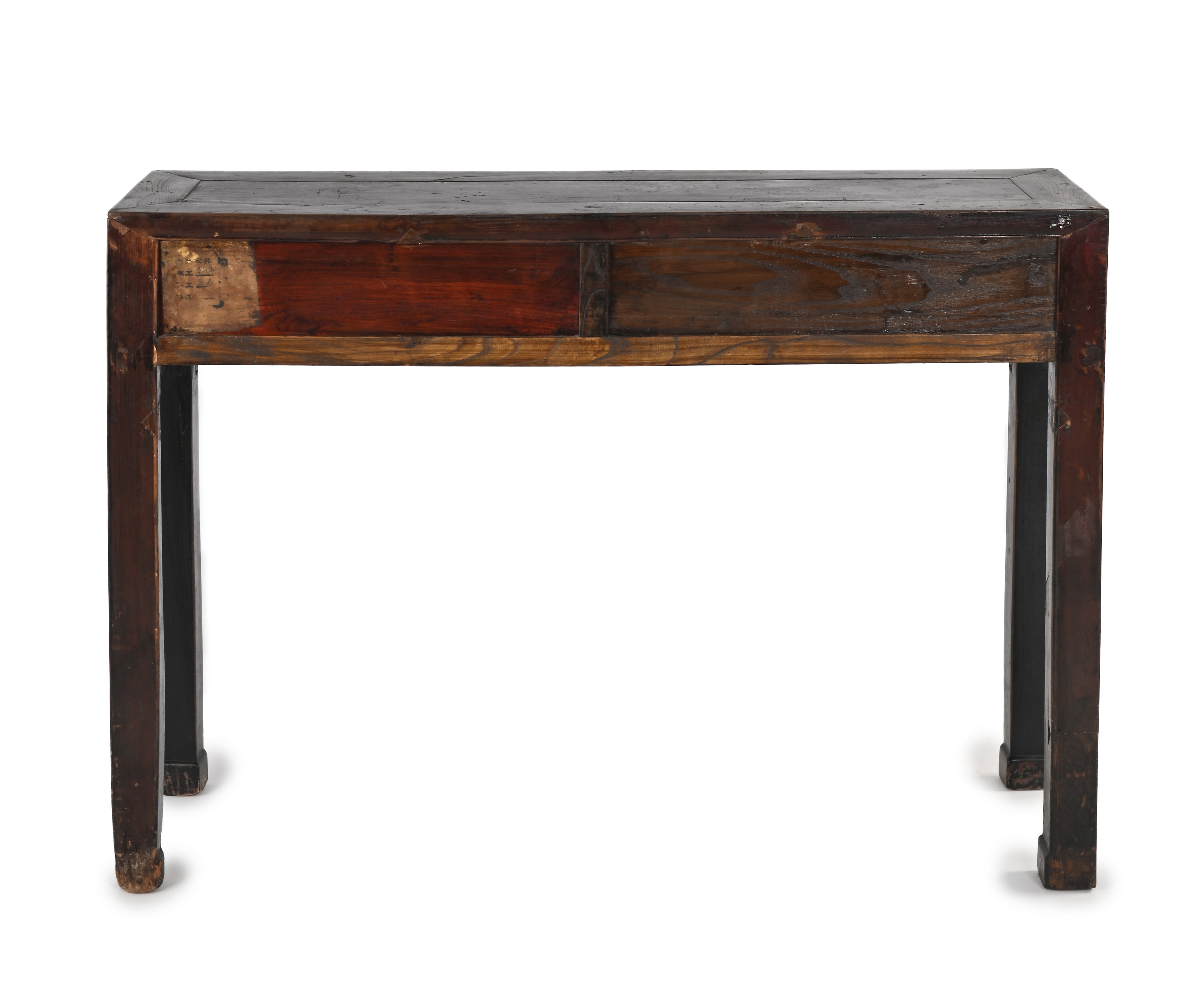 piano rettangolare, tre cassetti nella fascia, gambe squadrate