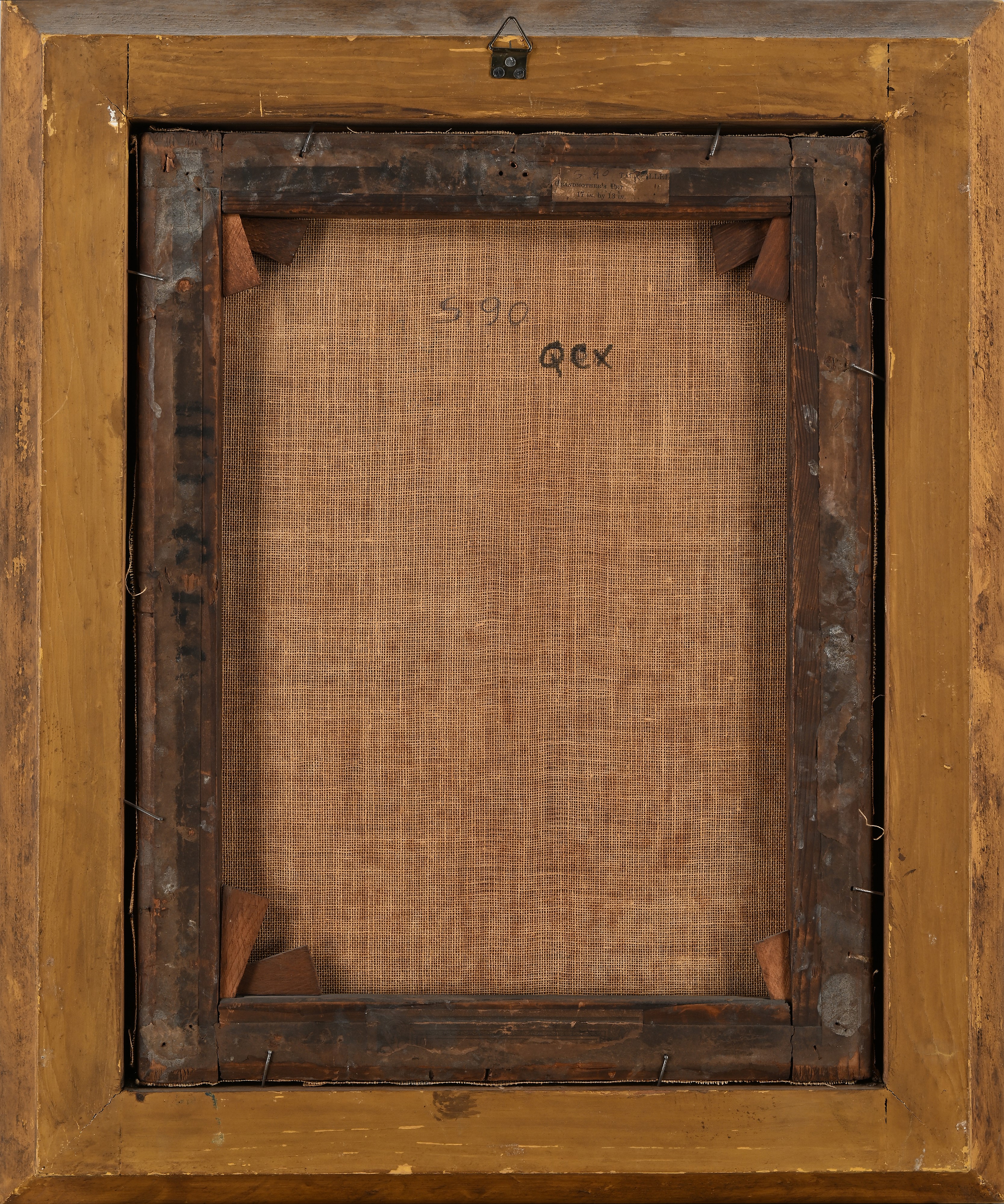 Firmato in alto a sinistra "Bellei"; sul retro etichetta con titolo in inglese "Grandmother's Pet"