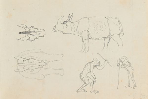 Sei fogli con appunti in italiano e inglese, studi di paesaggio, di animali e di figure in stile classico. Si tratta di fogli relativi al soggiorno inglese del 1863 presso il pittore George Mason.