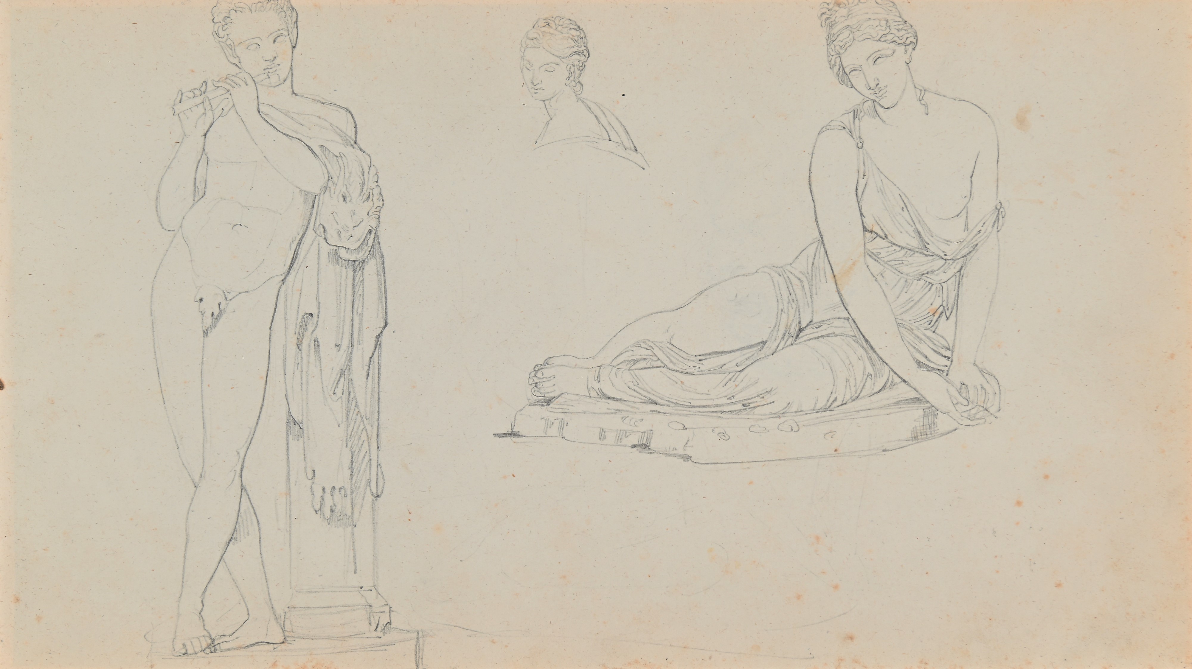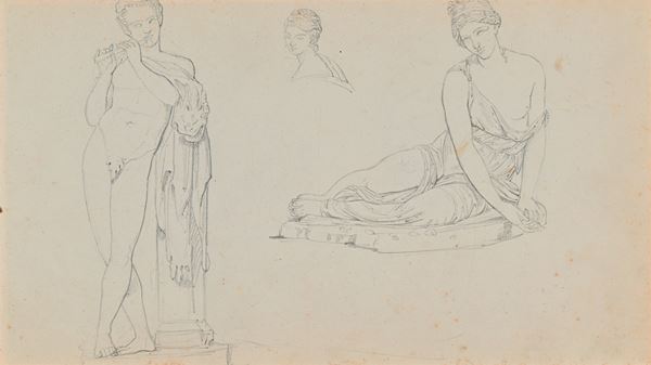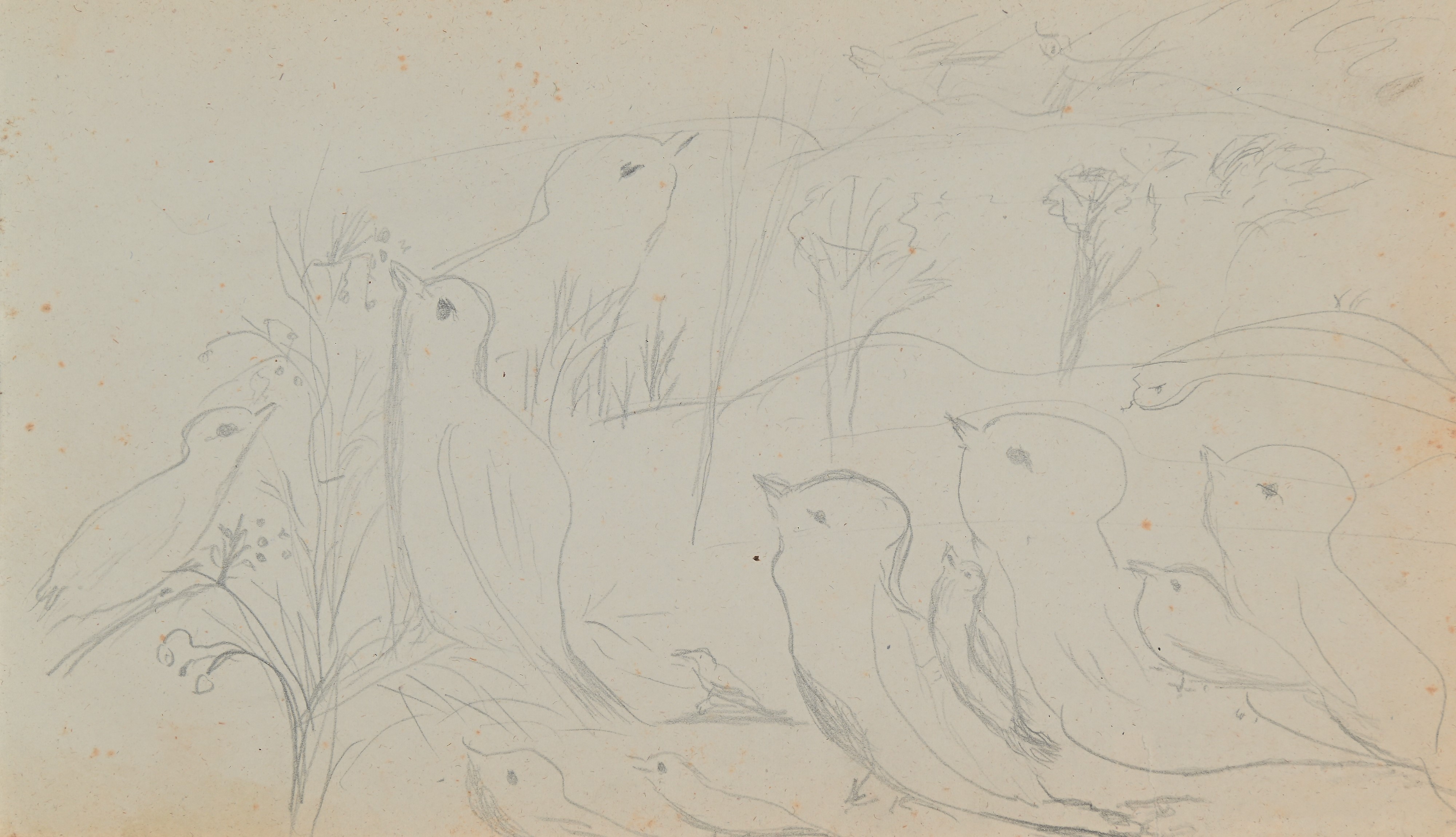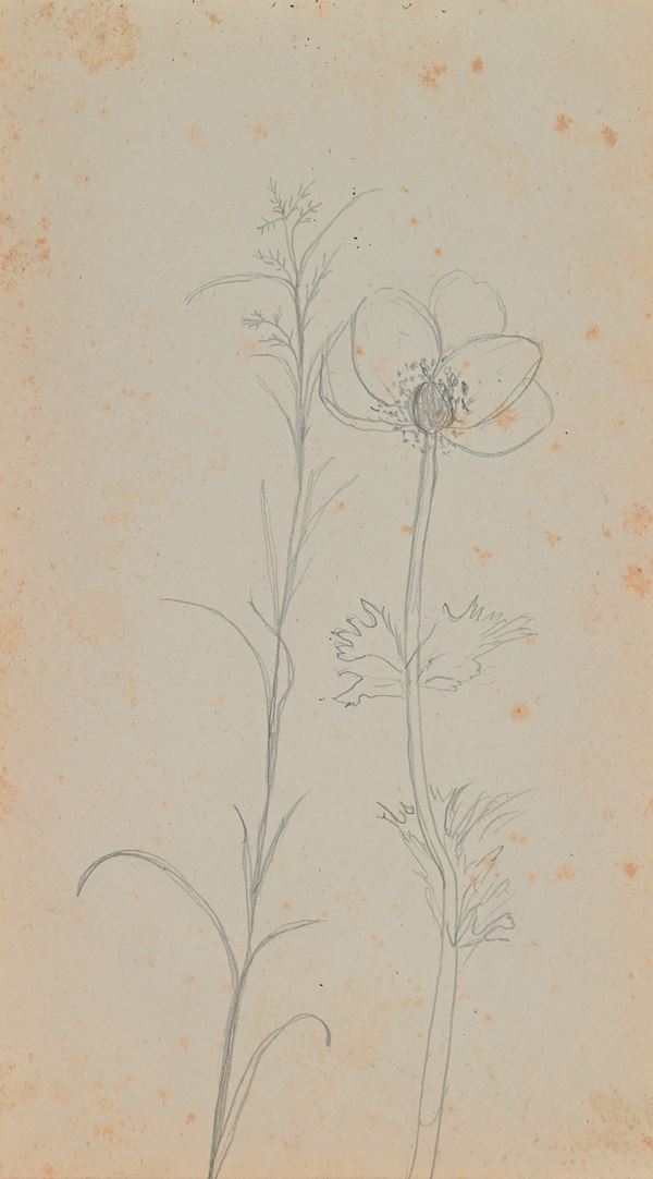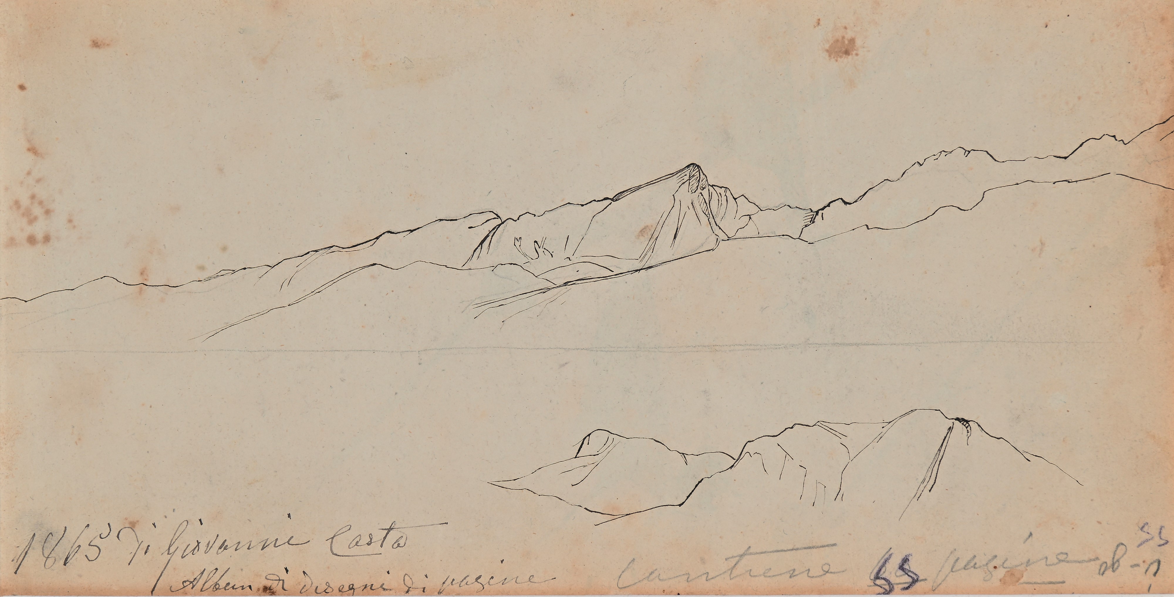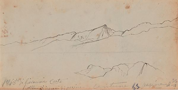 Studi di paesaggio, figura, fiori, decorazione, copie dall'antico e da MIchelangelo, animali, minuta di lettera senza destinatario. Il taccuino è datato nella prima pagina 1865.