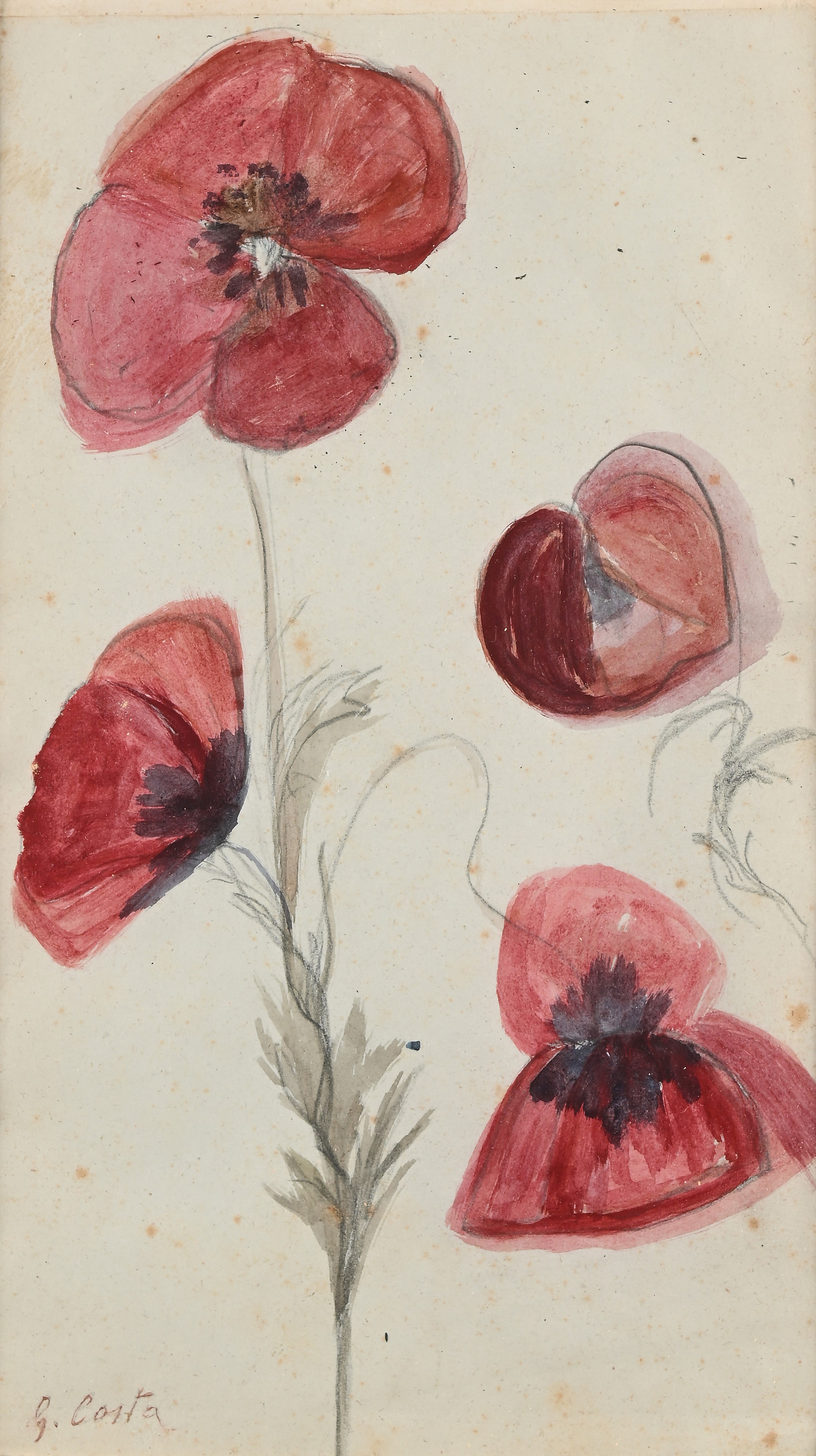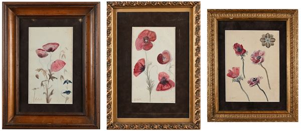 Tre acquerelli raffiguranti papaveri