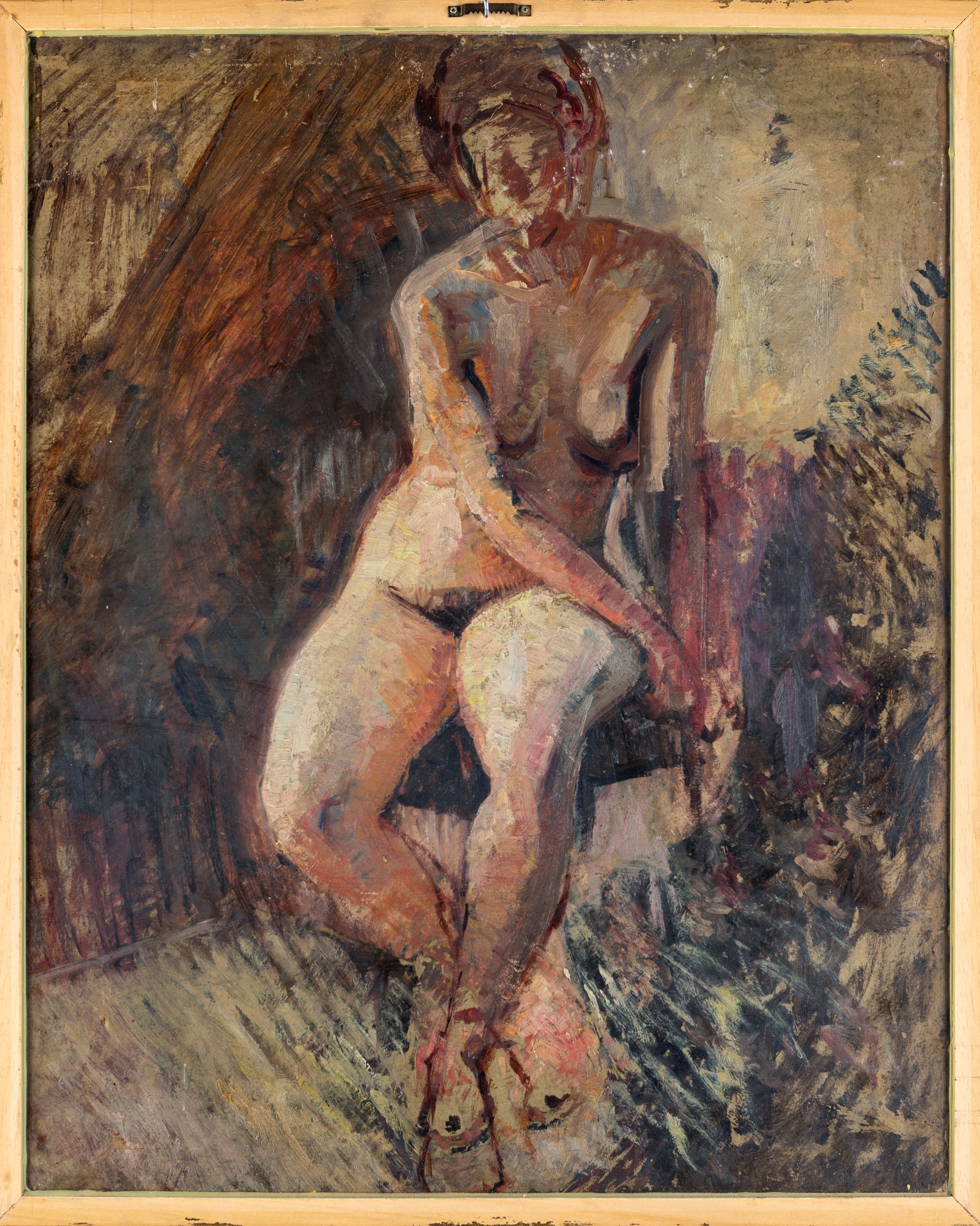 Nudo femminile stante (recto); nodo femminile seduto (verso), 1918