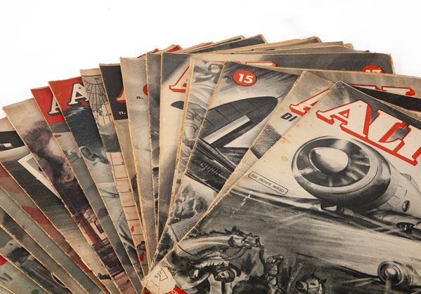Ali di Guerra. Quindicinale illustrato dei combattenti alati e dei produttori di ali. 28 numeri dal 10 novembre 1941 al 10 giugno 1943: n. 11, 12, 15, 16, 17, 18, 19, 24/25, 27, 29, 30, 31, 32, 35, 36, 37, 38, 39, 40, 41, 42, 43, 44, 45, 46, 47, 48, 49
