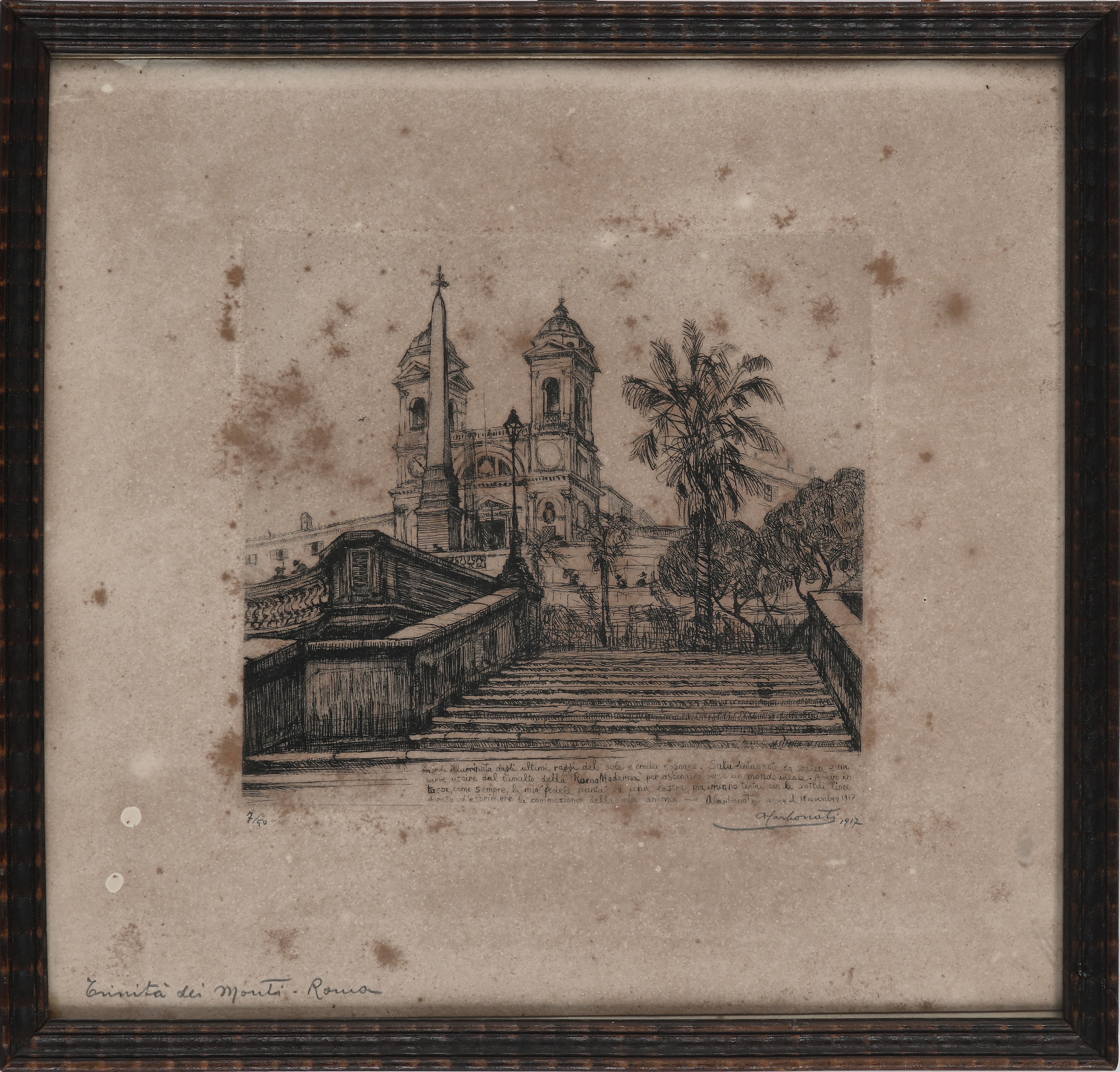 Antonio Carbonati - Trinità dei Monti a Roma 1917, Firmata in basso a destra A.Carbonati 1917