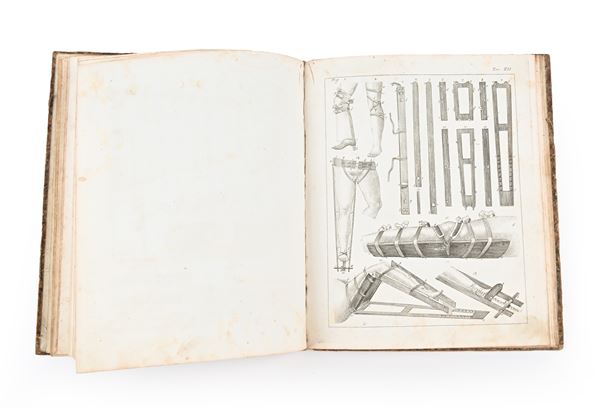 In 4o Si tratta dell'atlante con le illustrazioni dell'opera (25 tavole incise in rame), mentre mancano i volumi di testo. Legatura coeva in mezza pergamena.