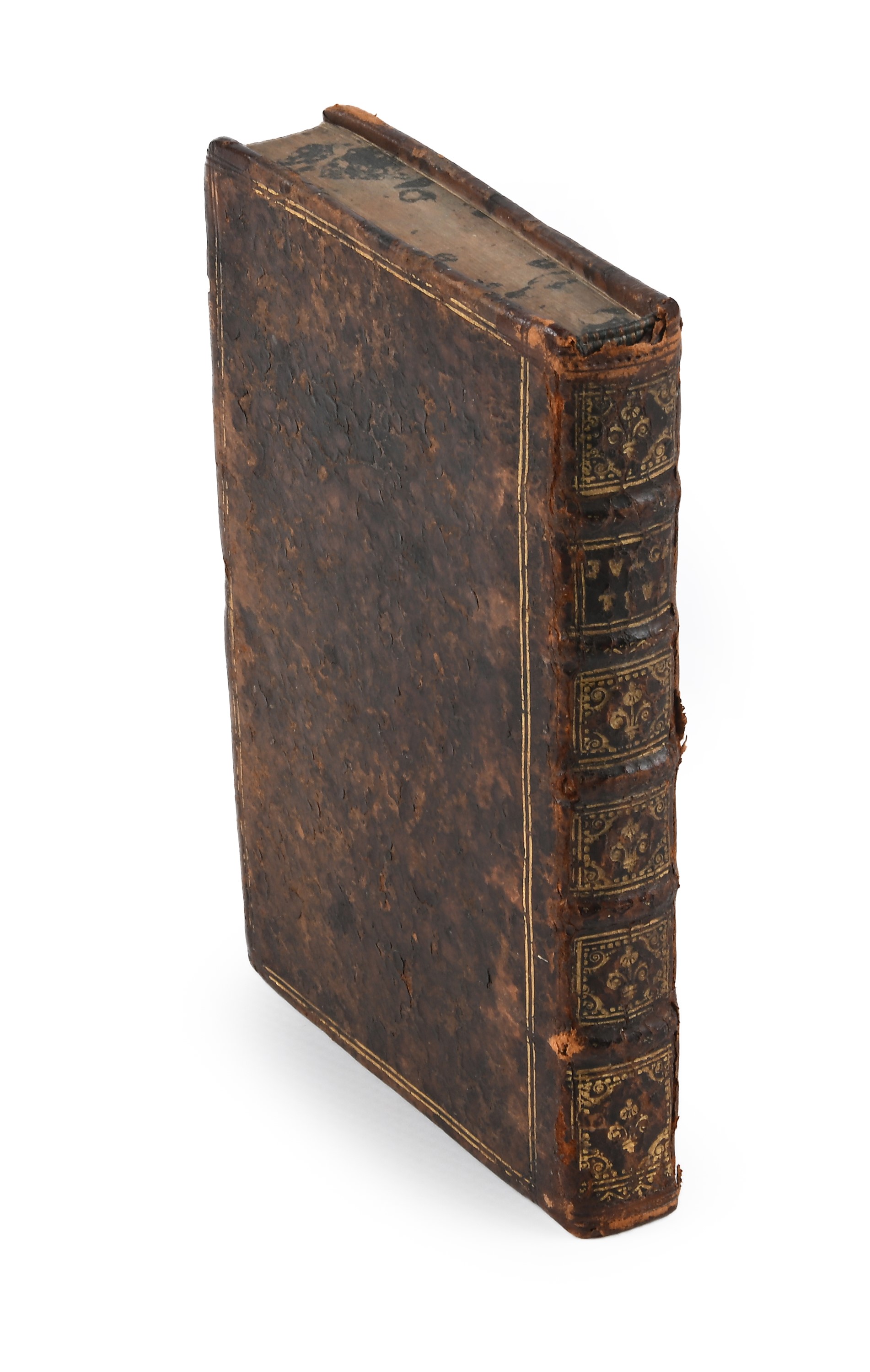 Legatura in tutta pelle con difetti, titolo e decorazioni in oro. Grazioso capolettera. Tagli marmorizzati.