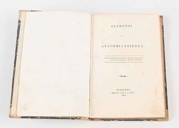 Leopoldo Uguccioni - Elementi di anatomia esterna / Insieme a 2 opuscoli: Vincenzo Colosimo - Su un feto bicefalo, Napoli 1831 Illustrato con un tavola a piena pagina; Memoria intorno all'uso di due specifici a favore delle donne gravide Traduzione dal francese del Dottore Dioniso Roidi, Firenze 1786, Carli e Comp., Firenze 1813