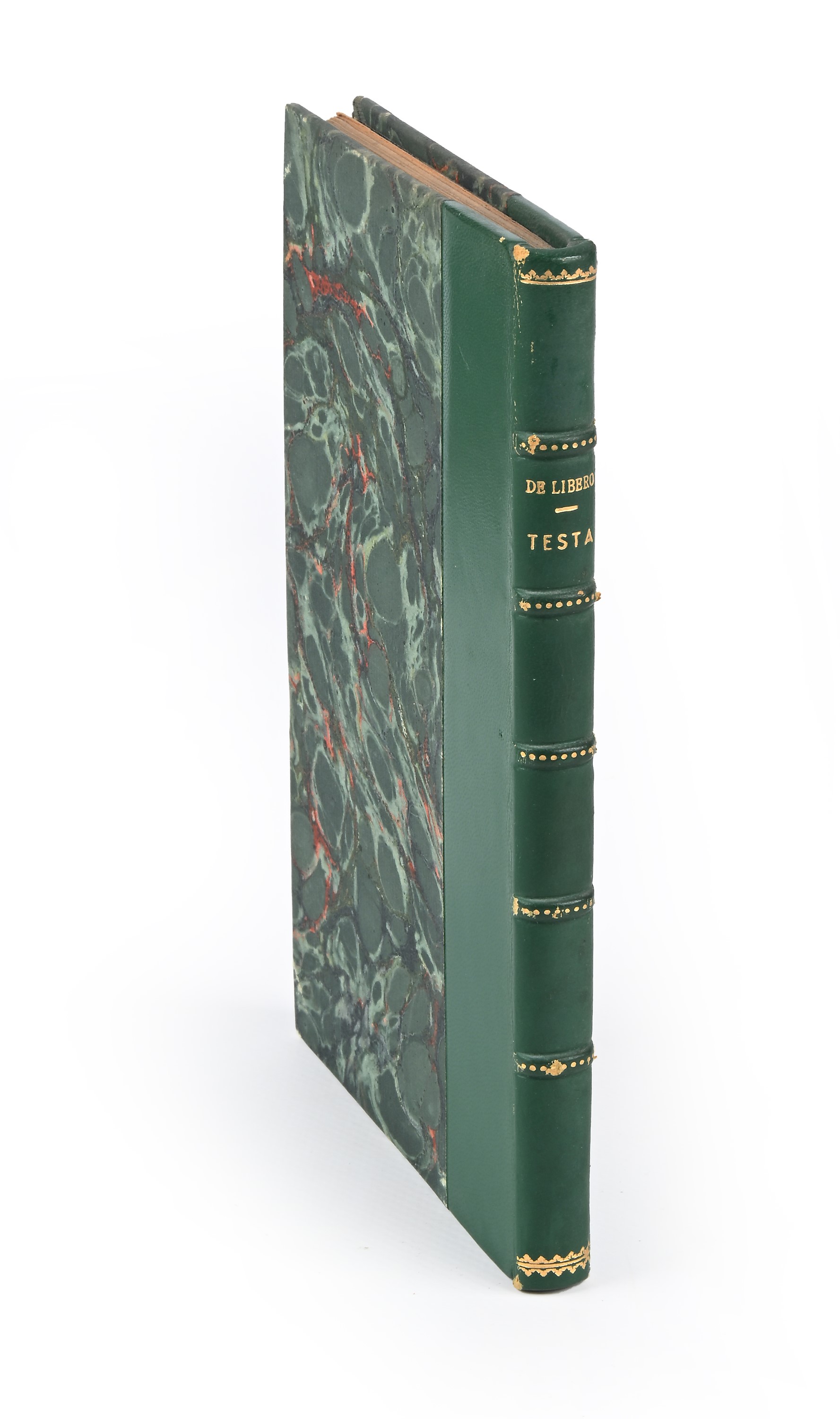 pp 84-4. Esemplare rilegato in mezza pelle verde, brossure conservate. Esemplare 115/600 su carta vergata. Copia ben conservata.
