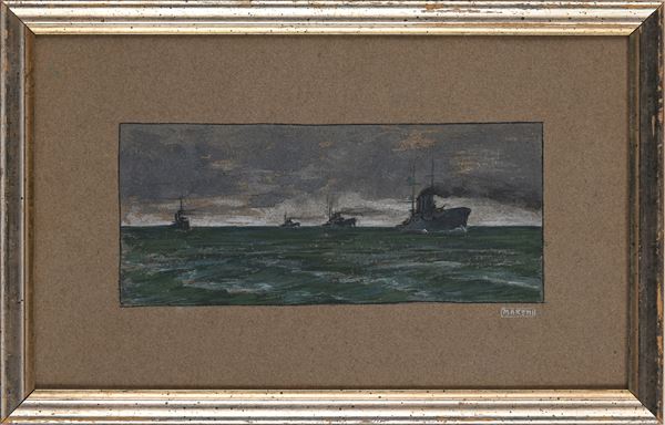 Maroni - Acquarello con 4 navi da guerra, XX secolo