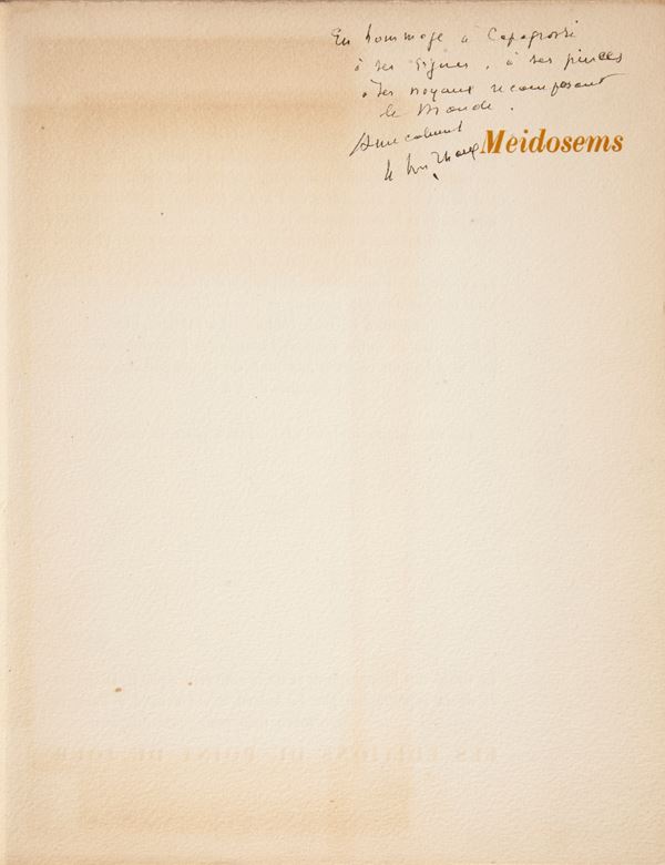 . Colophon con giustificativo della numerazione. Esemplare 159/250. Dedicato in prima pagina "En Hommage a Capogrossi ...."