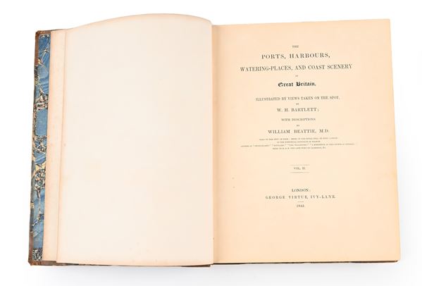 2 volumi in 4o. illustrato con 125 splendide incisioni di porti, baie, insenature e coste del Regno Unito, a piena pagina comprese quelle dei 2 frontespizi realizzate da Harding, Cooke, Balmer e Bartlett. Legatura in mezza pelle con titoli su tasselli in oro al dorso, angoli in pelle, tagli marmorizzati.