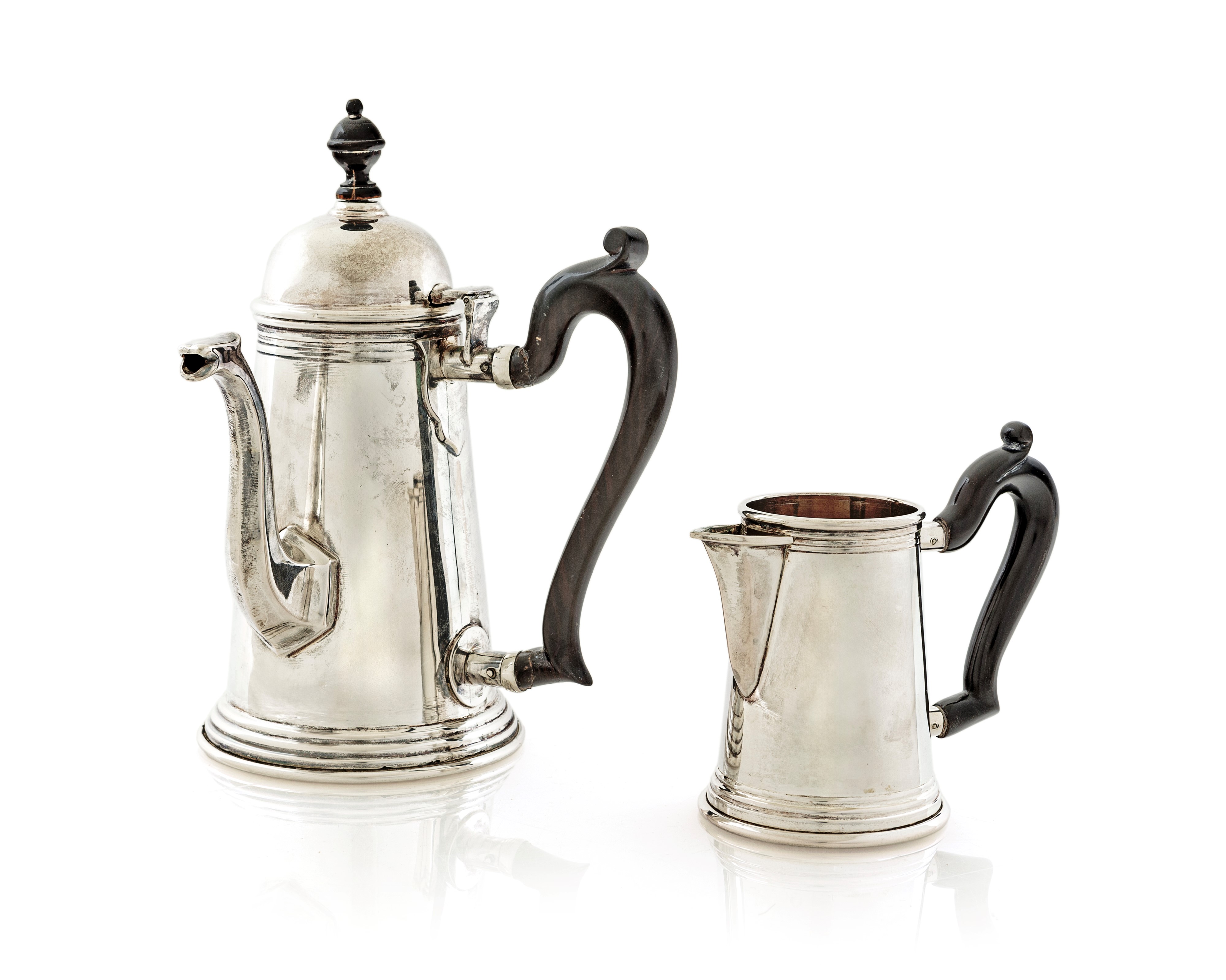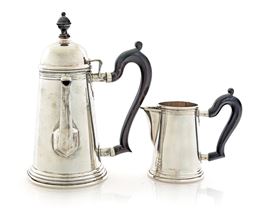 Caffettiera e lattiera solitaire in argento 800/000, Broggi, Roma